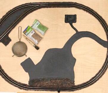 Roughly draw around both edges of the track. In between the lines is where you will apply the ballast material.