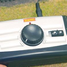 Continually turning the control knob anticlockwise so that it cannot be turned any further will bring the locomotive to a halt and the red LED will go out.
