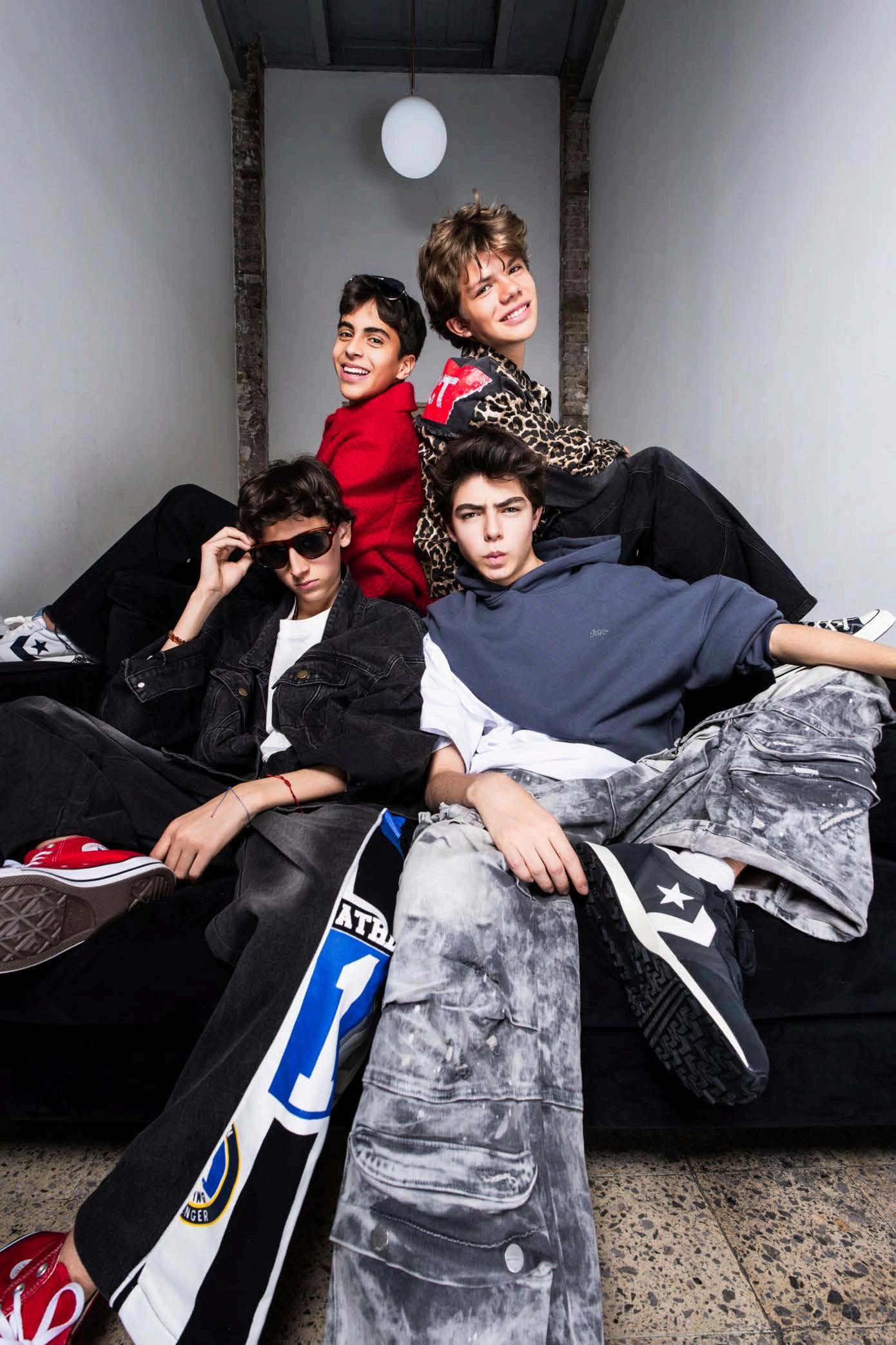 Chema, Leo, Nico y Pindas están usando ropa, zapatos y accesorios de Sfera, C&A, Hey Dude, Presol, Shein, Pull and Bear, Zara, Bershka, Ray Ban, Imperfect_Garms, American Eagle, Converse y Banana Republic.
