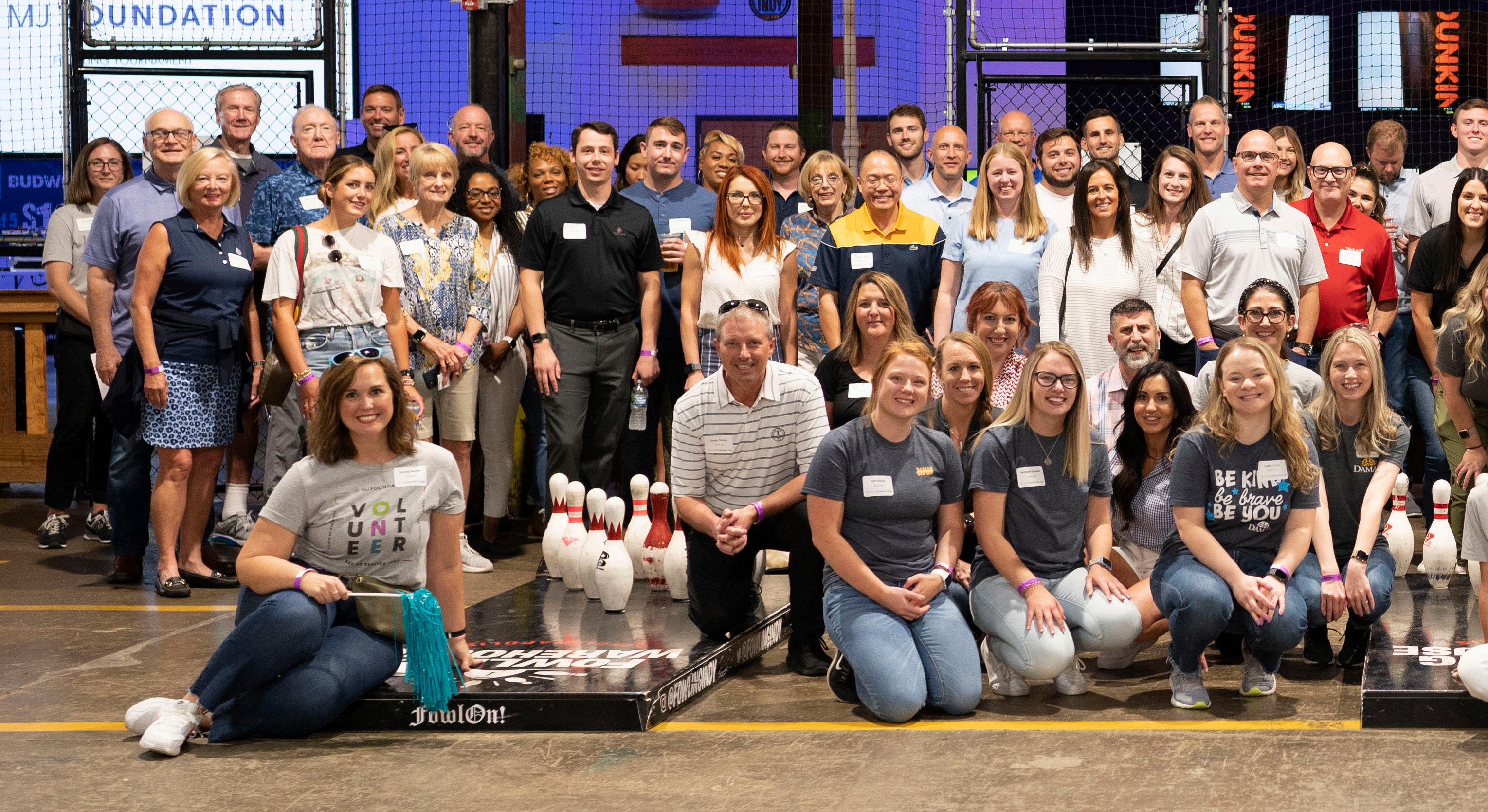 1. All attendees and participants at the MJ Foundation Fowling Tournament in August 2022.1. Event Sponsor Marathon Health attendees at the MJ Foundation Topgolf Tournament in November 2021. | 2. Attendees at the MJ Foundation Diamondsback Game in September 2022.