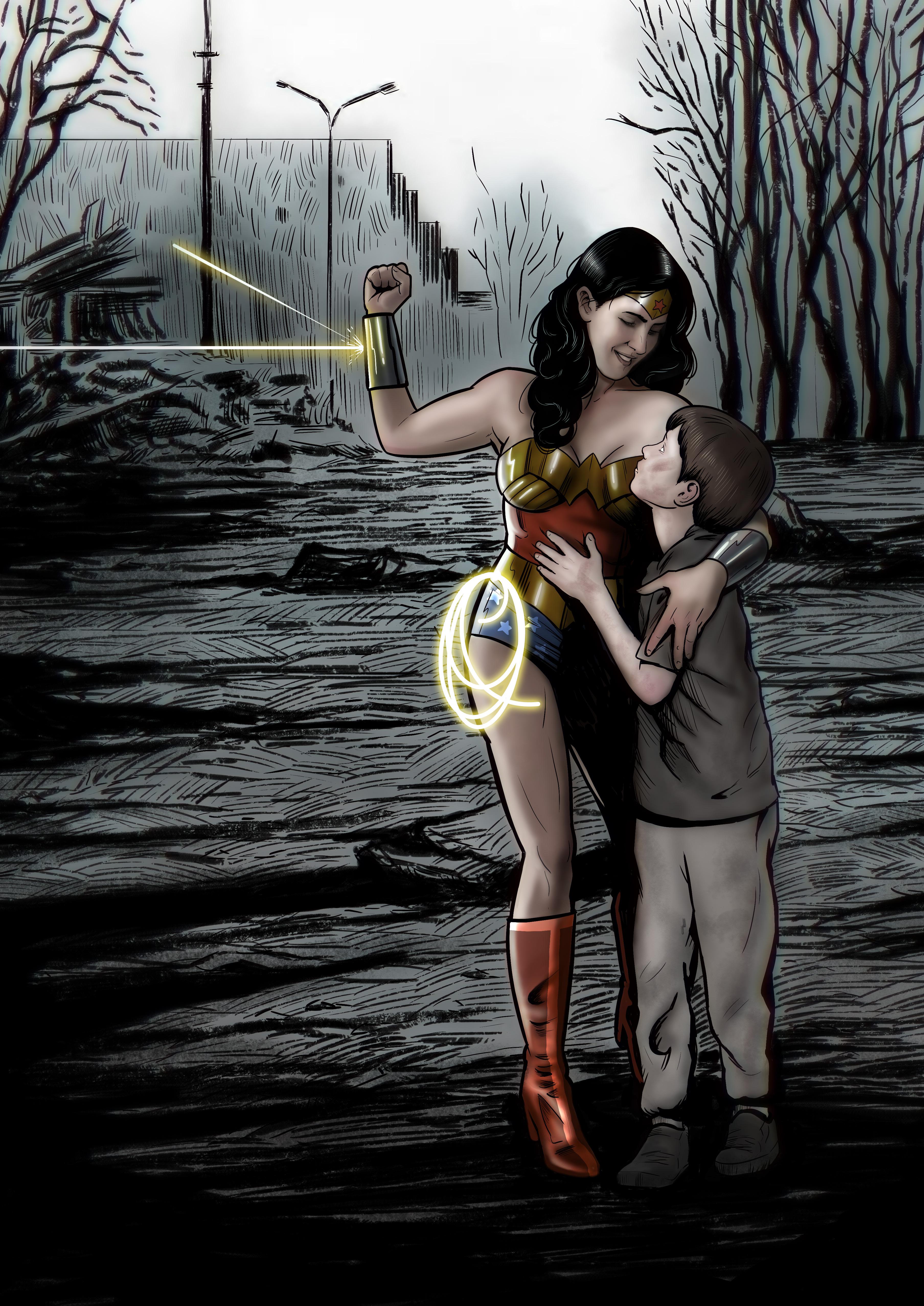 Wonder Woman is not very well known in Finland. When I saw her on the Silver Screen for the first time it was like WHAM! – I became an instant fan. I have been drawing images of her ever since and, yes, I even got a tattoo of her on my arm. My dream, life goal if you will, is to get to draw a DC cover of Wonder Woman.