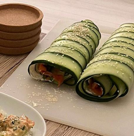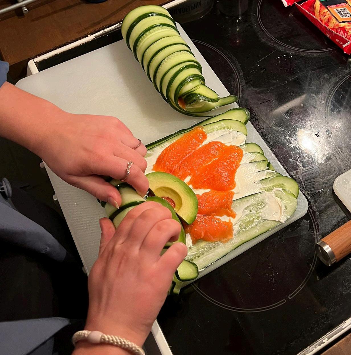 Ifall du vill utmana ödet och prova behöver du gurka, färskost, avokado och lax.