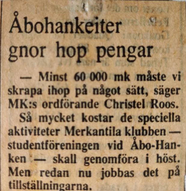 Även om resten av loggboken är suddigare än mina ryskaläxor, är det lätt att se alla de roliga händelser som resan har resulterat i. Porukkan av c. 20–40 MK:iter (beroende av vilken källa man väljer att tro på) som deltog till roendet fick en oförglömlig erfarenhet för resten av sitt liv. Ingen drunknade eller dog på andra sätt heller vilket är ett stort plus*. Jag har framför mig 12 olika artiklar av diverse medieföretag som bevisar uppmärksamheten som MK:iterna lyckades skapa för MK. Denna lyckade resa resulterade även (säkert) skapandet av ett årligt evenemang som är vappens höjdpunkt ännu i dagens läge: Vapprodden*. Dessutom fick årets styrelse en årsfest som firades på Åbo slott och som hade Mauno faking Koivisto* som festtalare, vilket är helt galet. Enligt MK:s bokslut 1978 hade budgeten varit 100 000 mk för årsfesten vilket är typ många pengar! Även om jag inte kan ge raka siffror om hur effektivt det är att ro från Helsingfors till Åbo för att samla in pengar, är det säkert något som vårt ekonomiutskott borde överväga i framtiden, ifall vi anser oss befinna i brist av deg*.