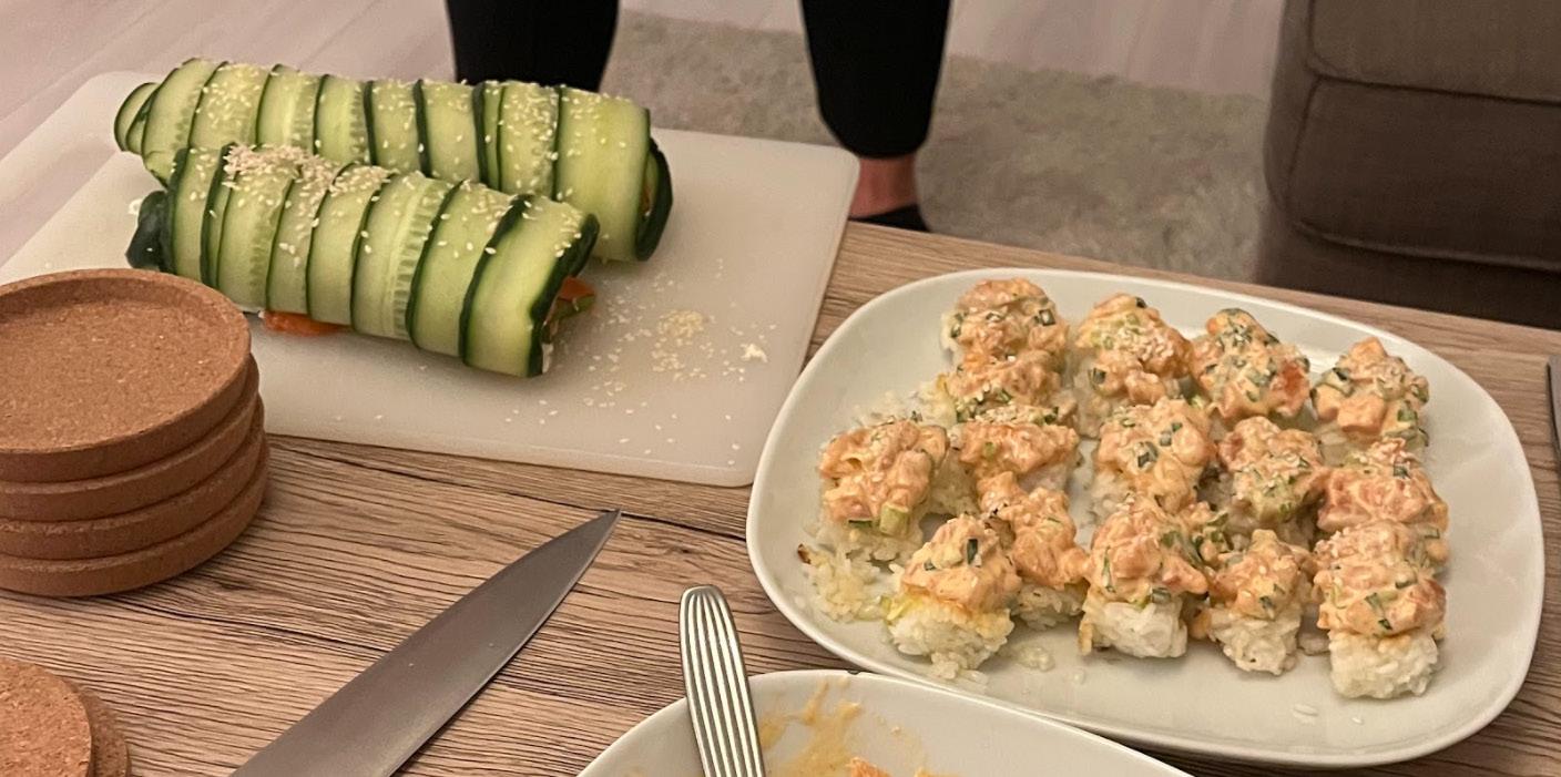 Våra rullar såg mer ut som en rulltårta än sushi, men att se varandra försöka rulla var ändå bra underhållning för en onsdagkväll. För att underlätta ert rullande rekommenderar vi att skära bort ändarna på gurkan för att få en jämnare bas samt att använda tandpetare för att “hålla fast” rullen. Summan av kardemumman: gurka är gott, färskost är gott, lax är gott och avokado är gott, så det kan inte gå allt för fel. Var det värt ansträngningen? Knappast.