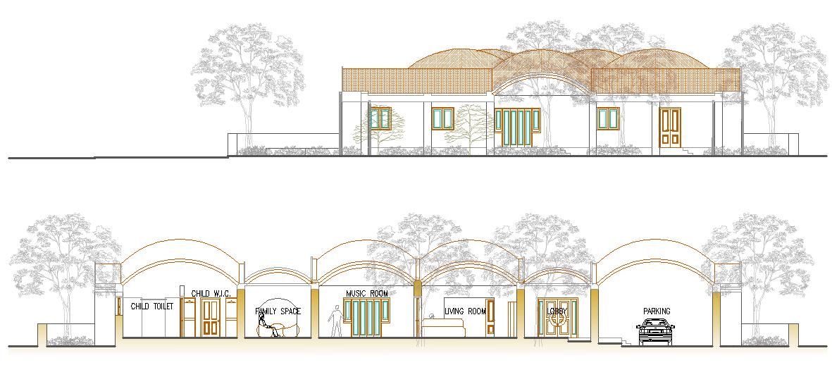 The Sarang Mahal, emerges as a blend of artistic expression and architecture for a Sarangi musicians' family. Its Catalan brick vaults and domes, create a space where the melodies of the sarangi interweave with the desert breeze. The bungalow maximizes natural light and ventilation. Utilizing local sandstone and traditional techniques, the Sarang Mahal honors the cultural heritage of Jaisalmer, while providing a serene and inspiring retreat for its resident musician family.