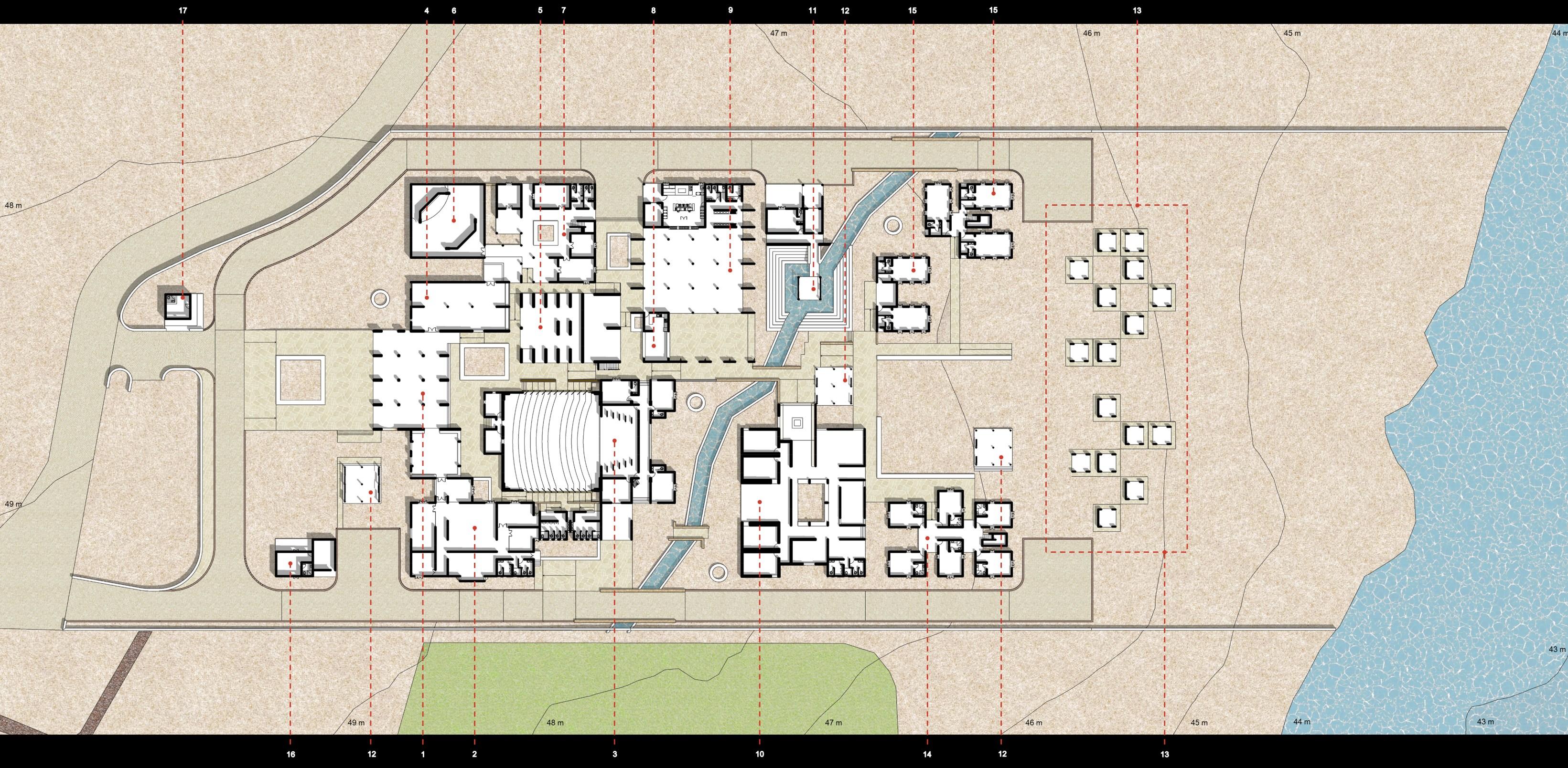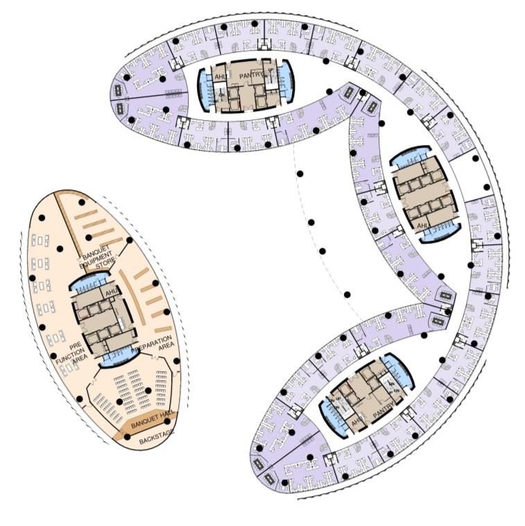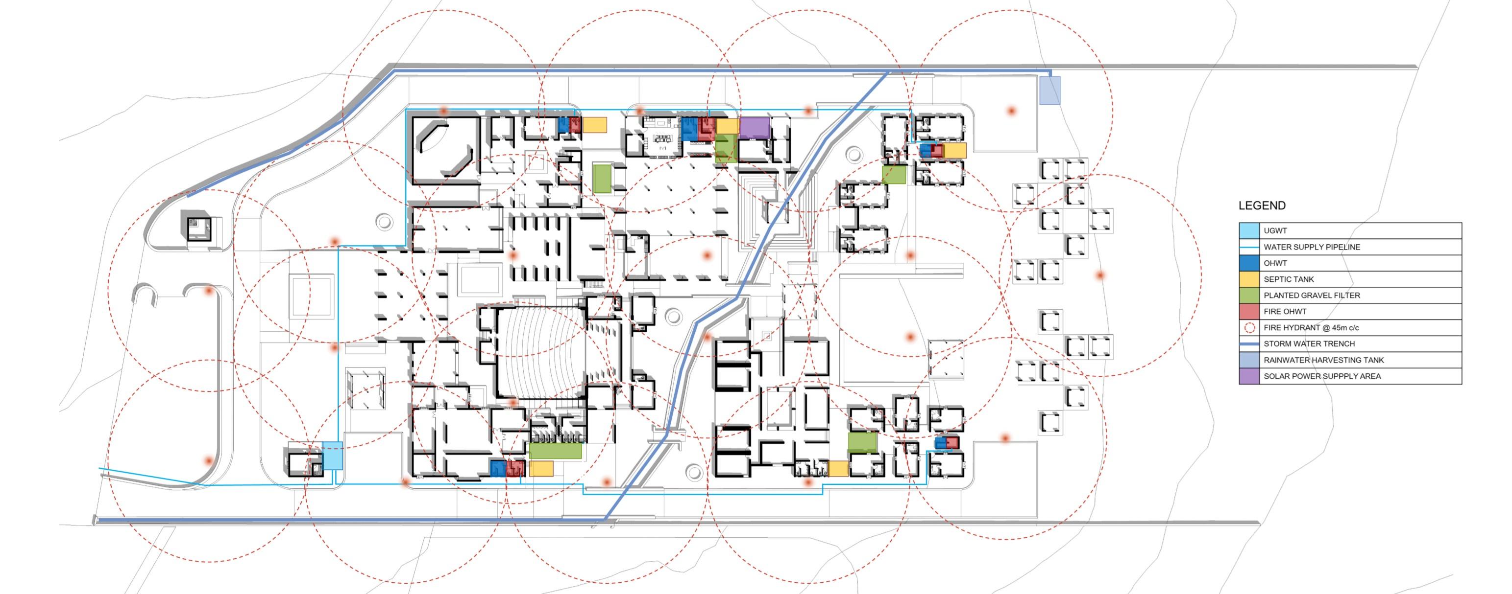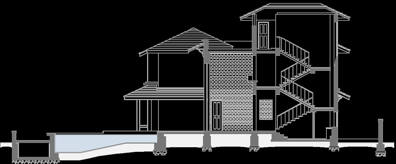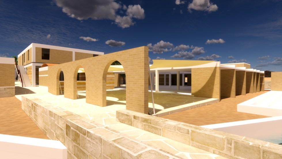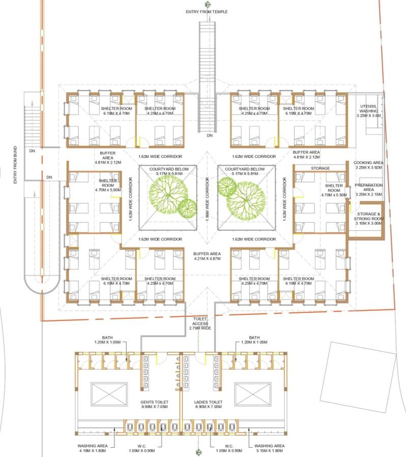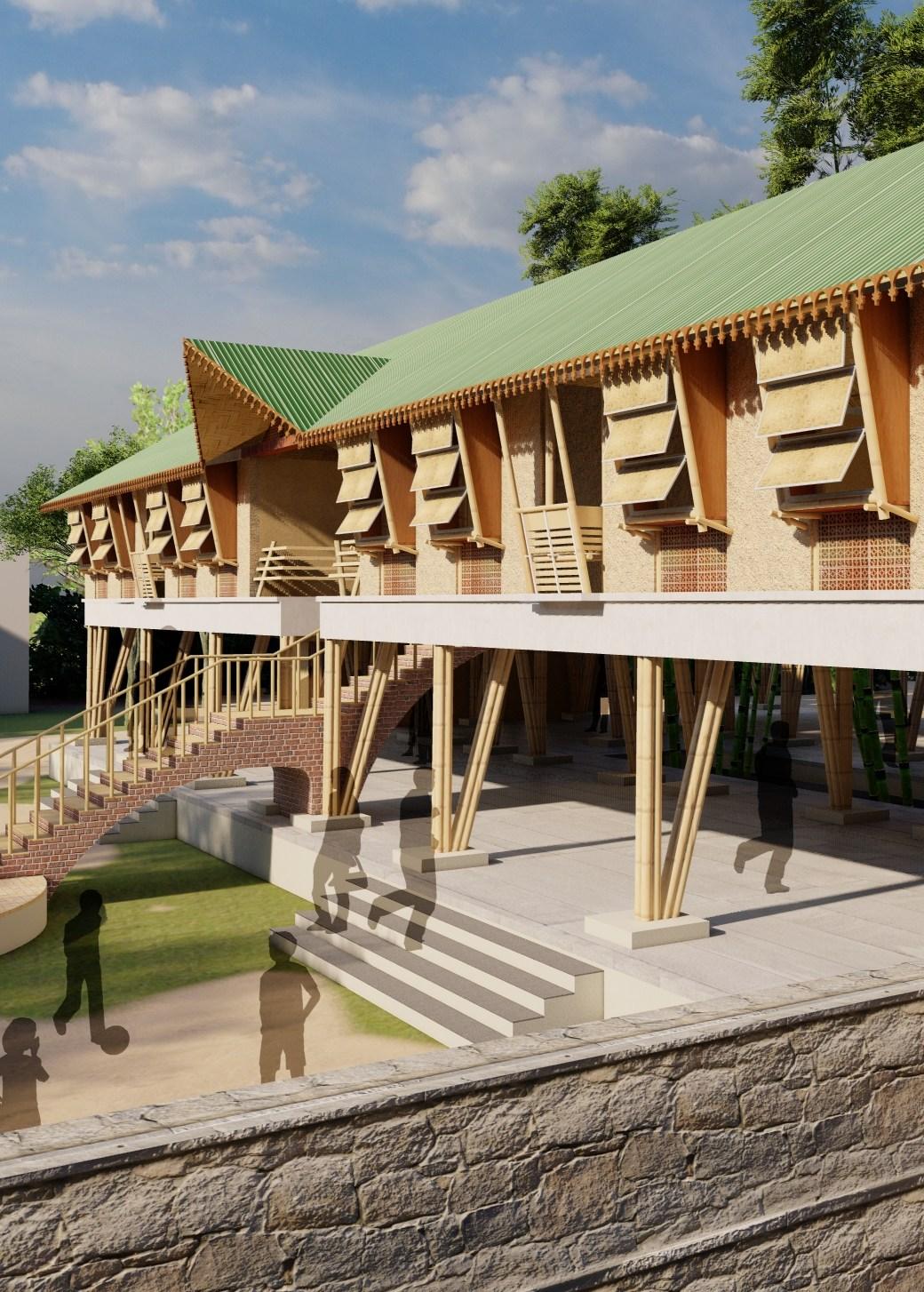 The cyclone shelter is proposed on the island to function as a relief shelter to the families staying in the nearby areas during the event of a calamity, design which accommodates guest-rooms during nonemergency times and a public ground for children to play.