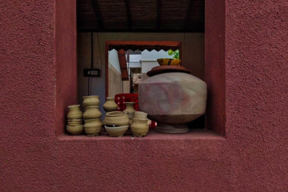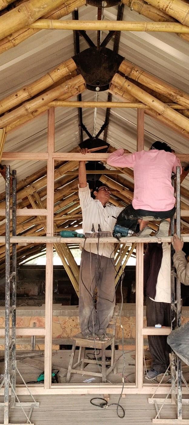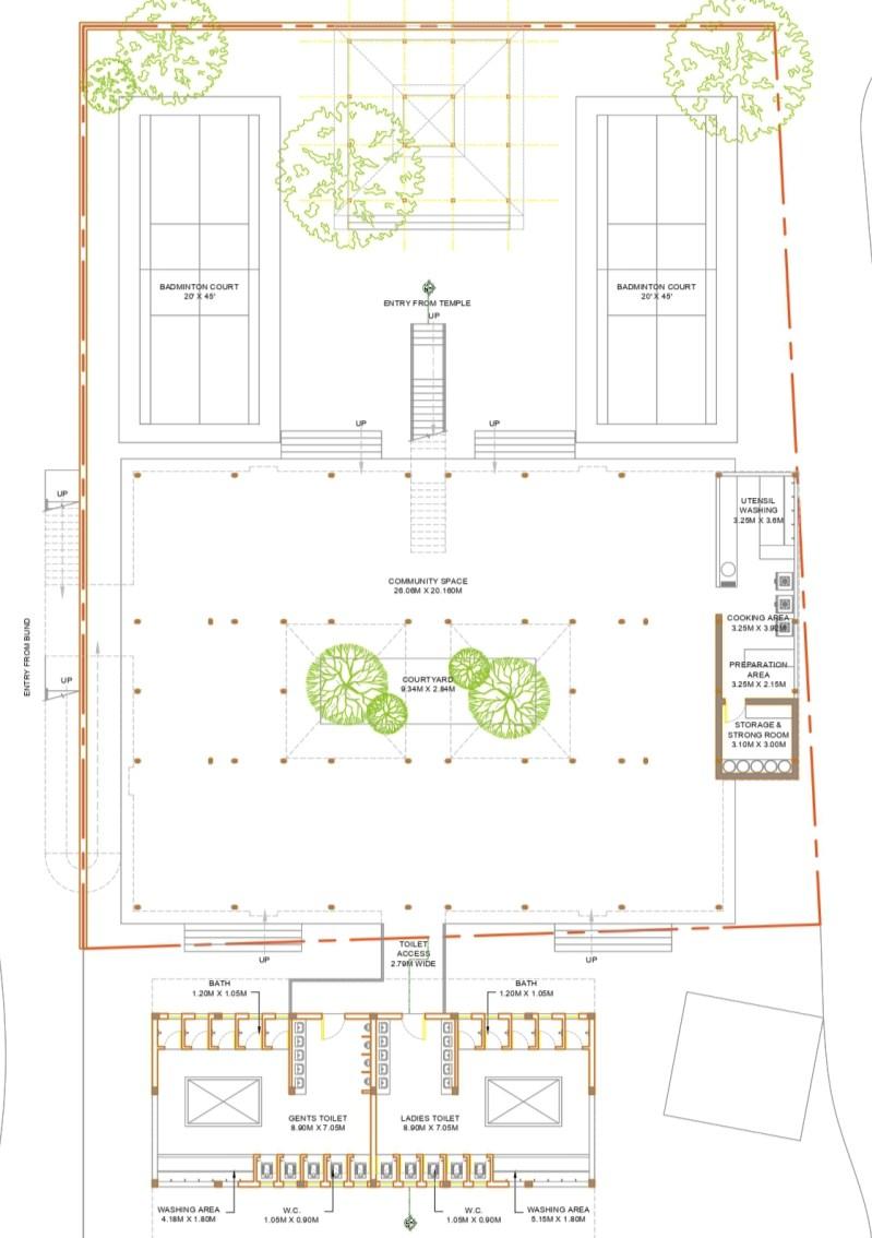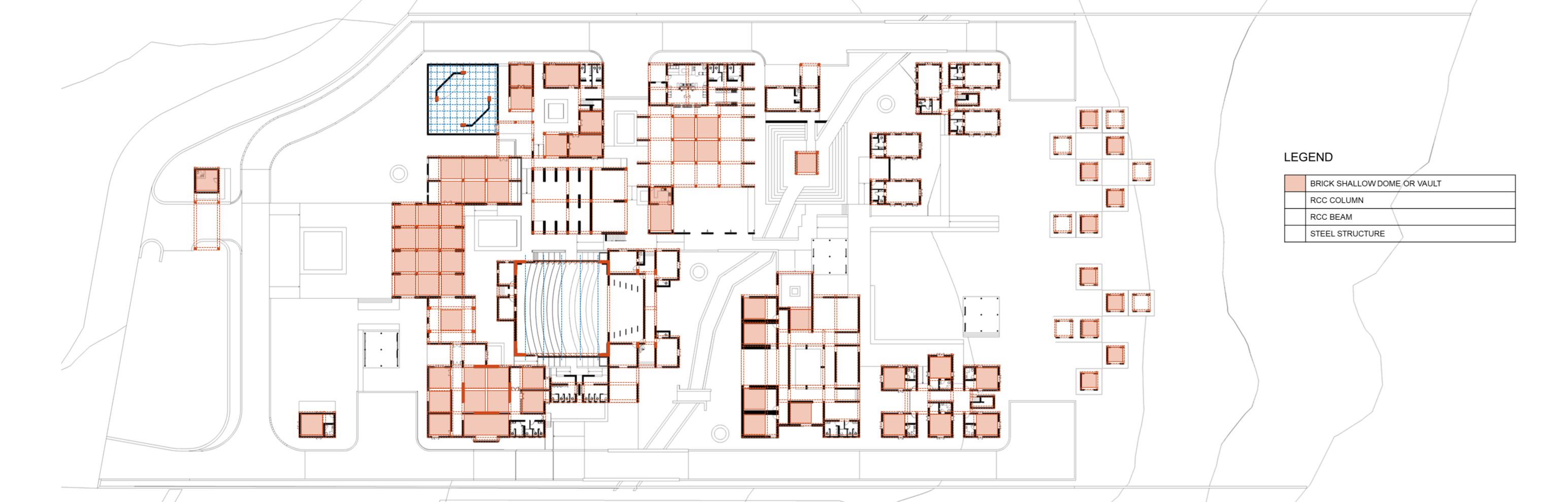 domes to echo Kachchhi folk music's rhythm and fluidity. Locally prepared CSEB block masonry, walls minimize embodied energy, vital in the dry desert. Designed for an earthquake zone, the and dome acoustics enhance the immersive musical experience, creating a sustainable cultural hub.