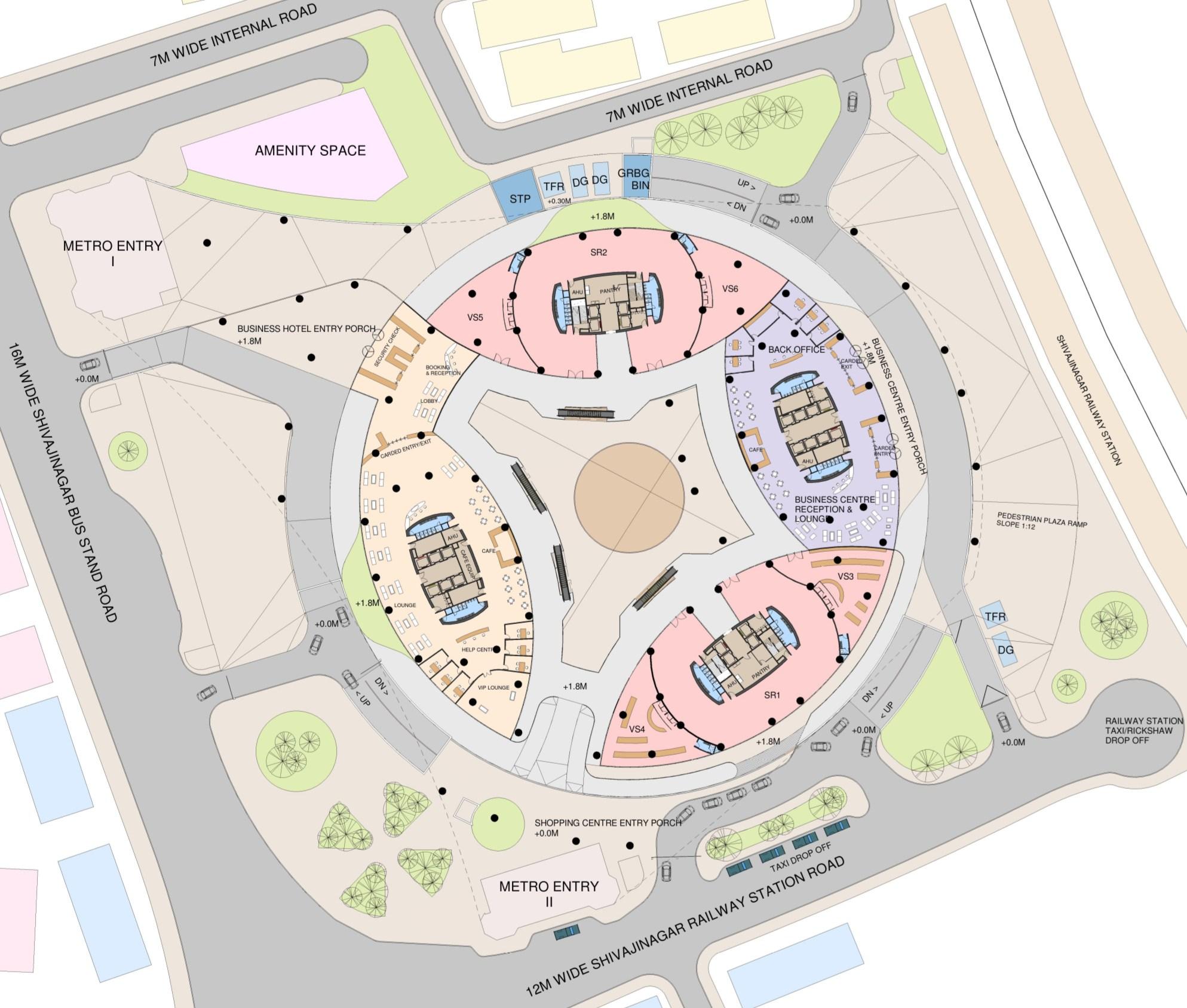 The Shivajinagar Internodal Transit Hub is a visionary endeavor that seamlessly integrates connectivity with commercial spaces. This hub features a business hotel, offices, and a shopping center, creating a bustling center of activity. With a simple circulation design approach, the transit hub ensures smooth and efficient movement throughout the complex, catering to the needs of commuters, business professionals, and shoppers alike.