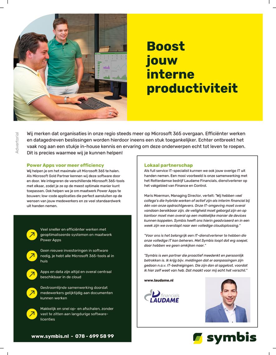 Een eerste stap is duurzaamheid dichtbij brengen en concreet maken voor jou en je mensen. Ik denk dat het niet realistisch is om het roer 180 graden om te gooien. Financiële duurzaamheid is een essentieel onderdeel van duurzame verandering. Wat wel kan, is duurzaamheid als pragmatisch en realistisch beleid zien om je bedrijf toekomstbestendig te maken. En beginnen met praktische stappen. Als het daar over gaat, heb ik een onverstoorbaar vertrouwen in ondernemers. In het bijzonder in MKB-ers, en al helemaal als we het over Rijnmonders hebben. Wat als die ergens voor gaan, dan is het gisteren besproken en morgen geregeld. Bovendien wordt in Rijnmond gedeeld en samengewerkt. Dat zijn wellicht de belangrijkste ingrediënten voor verandering.