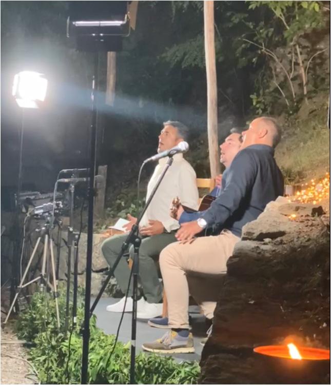 Pred nami je bil že naslednji izziv in še eno veliko presenečenje. Tretji koncert v vasi Brje, ki leži v Vipavski dolini, kjer so nas na povabilo mojega dragega prijatelja in kolega Mirana Rustje, pomembnega slovenskega skladatelja, zborovodja in pisatelja, z navdušenjem pričakovali. Potovanje do te čudovite vasi v Sloveniji je bilo zelo zanimivo in na svoj način slikovito. To naselje leži na gričih levega brega reke Vipave, v občini Ajdovščina na Primorskem. Imeli smo občutek, da smo v enem od del pisatelja ali slikarja ali pa v pesmih Mirana Rustje. Čeprav smo imeli čast nastopiti v Brjah, so se tudi gostitelji odlično izkazali kot organizatorji. Presenečenje je bil prostor, kjer je potekal koncert. Pečenkovci - čudovit prostor na prostem. Izjemna prizadevanja in pobuda našega gostitelja Mirana Rustje so poskrbela, da se je Trio Gentleman počutil kot majhen del zgodovine te čudovite gričevnate vasice iz pravljic. Poseben čar so večeru dali prebivalci, za katere se zdi, da so do zadnjega prisotni na koncertu. Na samem koncertu so Gentlemani povedali, da imajo prvič rahlo tremo, še posebej pri izvedbi slovenskih in italijanskih skladb, saj je bila publika izključno domače prebivalstvo, če izvzamemo dejstvo, da je bilo z nami nekaj »naših«. Tako so skupaj z gostoljubnimi prebivalci tega kraja in njihovim izjemnim sprejemom makedonskih prijateljev, z nasmejanimi obrazi in dolgimi aplavzi, Gentlemani občutili, kot da so doma. Občutek pripadnosti je bil še močnejši zaradi dejstva, da je bil z nami Miran Rustja in da je dal vse od sebe, da je bil ta dogodek napolnjen z ljubeznijo in pozitivno energijo, da bi se mi počutili povsem blizu, čeprav smo geografsko tako daleč. Po koncertu se je druženje nadaljevalo pozno v noč, gostitelji pa so druženje podaljšali do zgodnjih jutranjih ur. Niso manjkale niti želje po ponovnem srečanju v prihodnje, kar kaže, kako čustven je bil večer pod odprtim slovenskim nebom v Brjah.