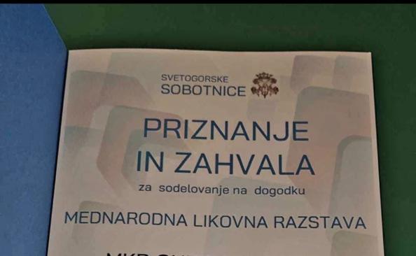 »Letos sem se imela čast v času od 11. do 15. septembra udeležiti likovne kolonije Od pike do umetnine, ki je potekala na Sveti Gori nad dolino reke Soče. Ko te nekaj močno navduši, je pogosto to izkušnjo težko ubesediti. Organizacija te kolonije je bila izredna, še posebej pa se zahvaljujem gostitelju in organizatorju Boretu Mitovskemu ter društvoma MKD Ohridski biseri in KUD Goriška paleta za njihovo predanost in gostoljubje.