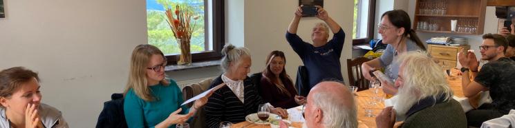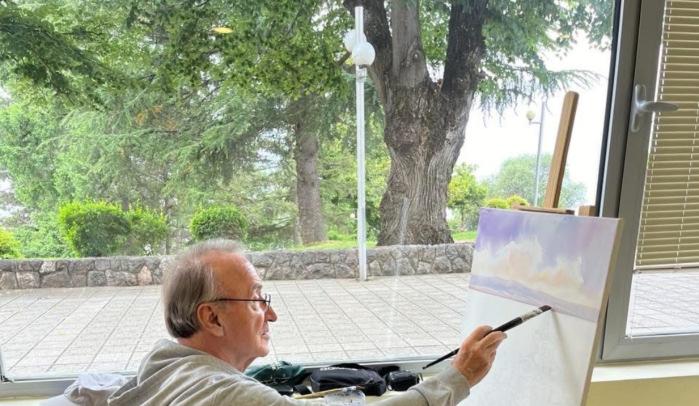 Navdušenje pa ni izviralo le iz prelepih razgledov na Sveto Goro, ki se je razprostirala pred našim prenočiščem, kjer so se barve in vzdušje spreminjale iz minute v minuto, sonce in oblaki pa so ustvarjali neprekinjeno igro svetlobe in sence. Pomemben del te izkušnje so prispevali tudi vsi umetniki, ki so tukaj bivali in ustvarjali –vsak s svojim edinstvenim talentom in osebnostjo, kar je v ta dogodek vneslo posebno bogastvo in globino.