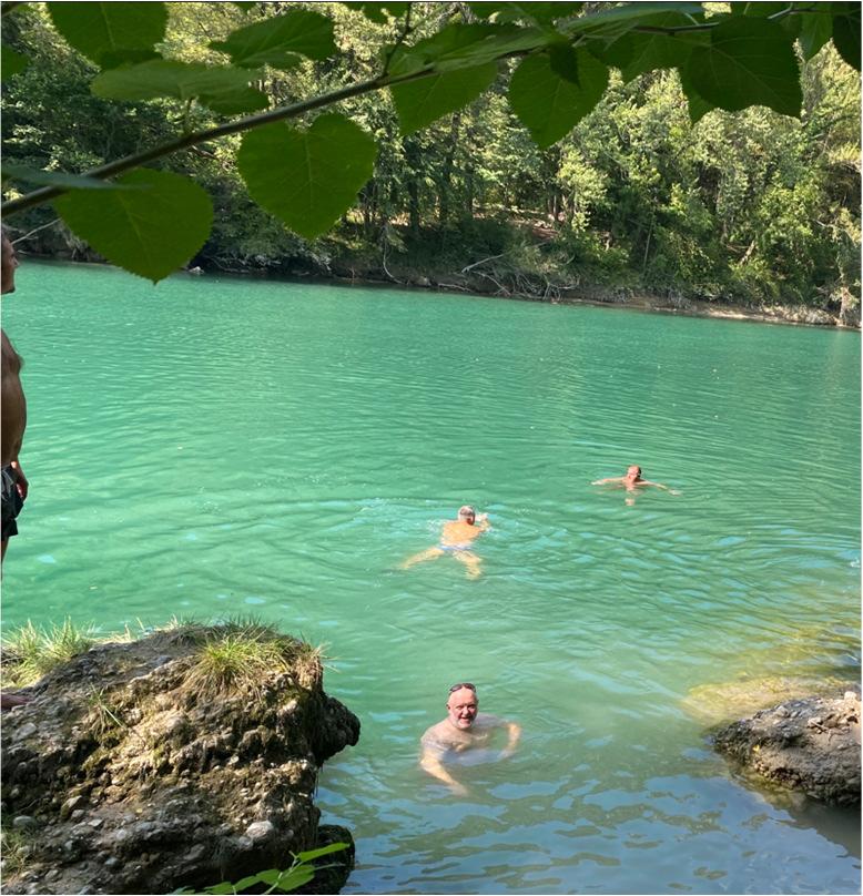 Ekipa iz makedonskega društva je bila nepogrešljiv del našega gostovanja. Nesebično so bili ob nas kot pravi gostitelji in poskrbeli, da smo se ves čas našega bivanja v Gorici počutili posebno dobro sprejeti. To gostovanje je pustilo nepozabne vtise, iz doživetij so se rodila iskrena prijateljstva, ki bodo trajala dolgo in bodo v prihodnosti ustvarjala nove trenutke za njihovo nadaljnje krepitev. Poleg koncerta ni manjkalo niti druženje v nekaj prostega časa, ki smo ga imeli. Skupaj z gostitelji smo obiskali tudi italijansko Gorico in uživali v njenih čudovitih kulturno - zgodovinskih znamenitostih, med katerimi nas je najbolj navdušil stari grad. Čudoviti so bili tudi trenutki, preživeti v konstruktivnih pogovorih s prijetnimi ljudmi ob dobri kavi. Zahvaljujoč avanturističnemu duhu Igorja ni manjkalo niti zabave, kot je bila osvežitev v Soči, ki nam je v poletni vročini še posebej prijala. Na žalost se je bližal konec gostovanja, a želja po skupnih trenutkih je bila obojestranska. Skupaj smo pojedli še zadnji zajtrk in popili kavo v slovo pred odhodom proti Makedoniji. Obljubili smo si, da bodo sledili novi projekti in nova druženja. In dejstvo, da se že trudimo, da bi uresničili, kar smo si obljubili, kaže, da je bila naša turneja iskrena, čista in dobronamerna. Dokazali smo tudi, da Od Vardarja do Triglava niti ni tako daleč niti tako drugačno. Ljudje so povsod enaki – tako tukaj kot tam. In glasba je enaka, razumljiva le za tiste, ki jo znajo ceniti. Univerzalna je, le navade so različne!