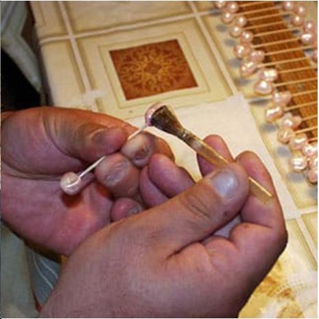 »Osnova za izdelavo našega bisera je zrno biserne matice, ki je prevlečeno s posebno emulzijo iz lusk endemične ribje vrste ohridska plašica (lat. Alburnus alburnus) iz družine krapov (lat. Cyprinidae). Sestava emulzije je skrivnost, zaradi katere se nadaljuje tradicija izdelovanja našega bisera. Vsako zrno pet - do desetkrat premažemo s posebnimi čopiči, narejenimi iz veveričinih ali konjskih dlak. Tehnologija izdelave že eno stoletje poteka izključno ročno. Zrno se mora po vsakem premazu sušiti od 45 minut do ene ure. Nizanje biserov pa je najboljše opraviti naslednji dan,« pojasnjuje Vane Talev