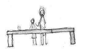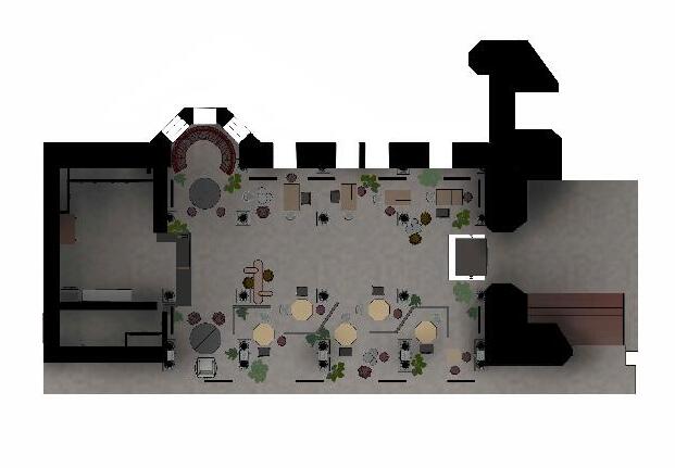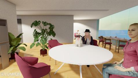 Breaking down the door leading to the kitchen to a low table so the customers can take their coffee by their own will this will also be easyly accessible for the wheechair.