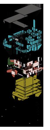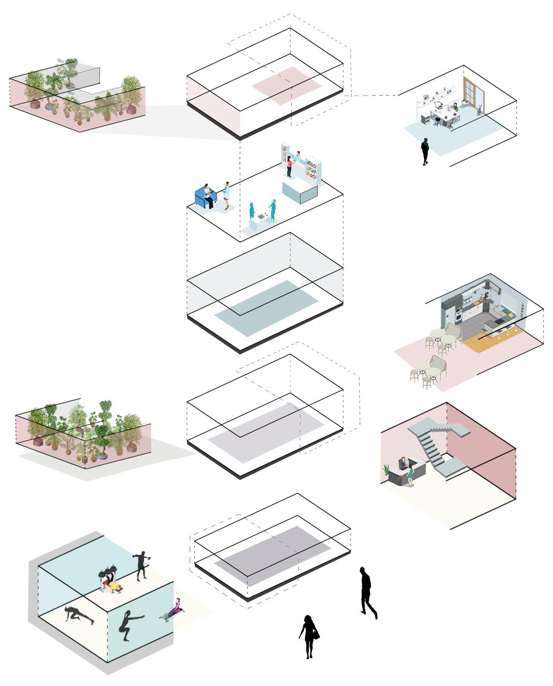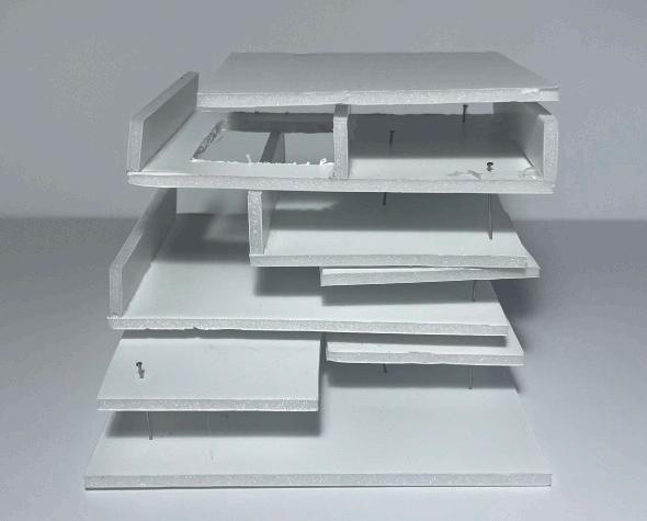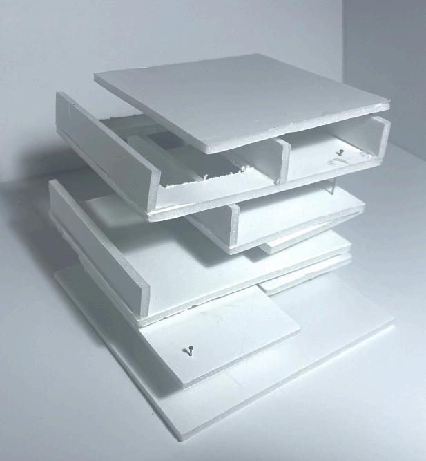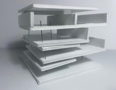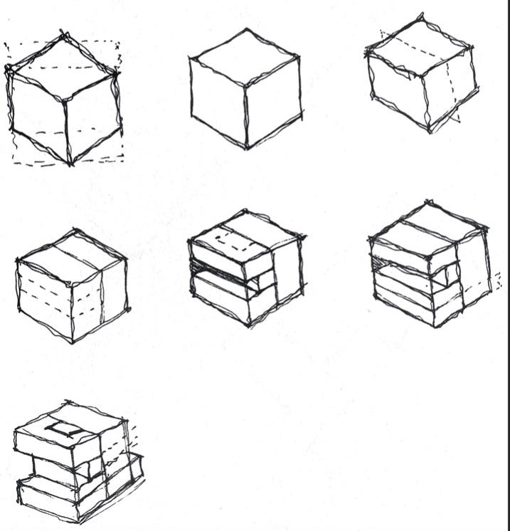 This project evolved through structural experimentation, starting with fragmented forms and interlocking volumes. The design was refined into a stacked, offset structure, creating fluid connections between spaces. The final model balances openness and function, supporting wellness through movement, nutrition, and community.