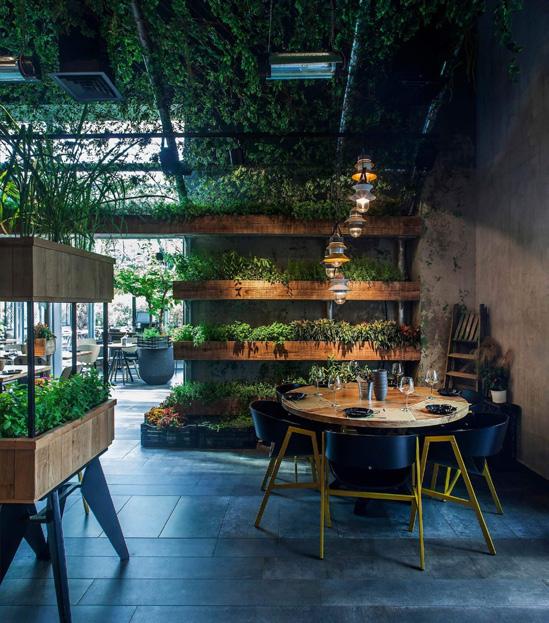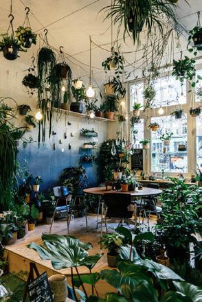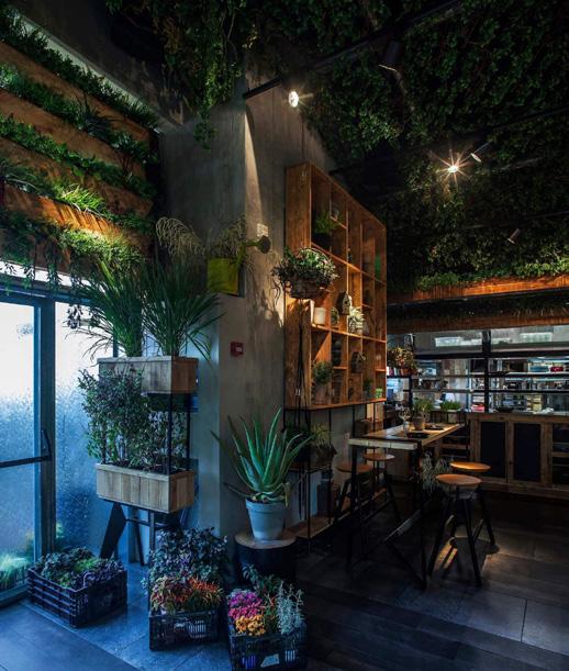 the start of this cafe was the mission is to make the city just a little bit greener. creatring a sense of cakmness and cozyness by making the cafe’s indoor a mix of natural envirmonment.