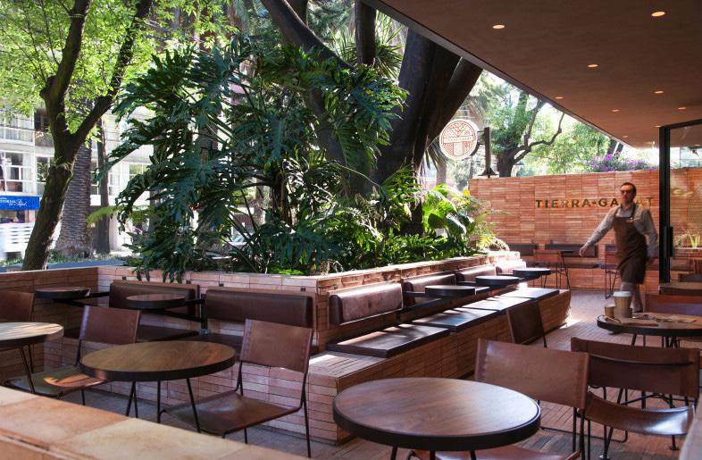 Designed by Esrawe Studioin in year 2016, this renovation of wodden detailing with Mexican history of forthrightand contemporary mexican concept place making, intergration between emelemtns, Wooden tables and chairs are used inside and outside, a nod to traditional Mexican handcraft. ”The textures taken from embroidered leather, embossed hide, knits, and the earth, comprise a language that imprints a particular personality in the brand,” said the designers. the exterior -This complements the brick and wood materials used elsewhere in the project.