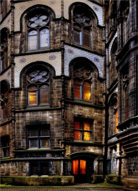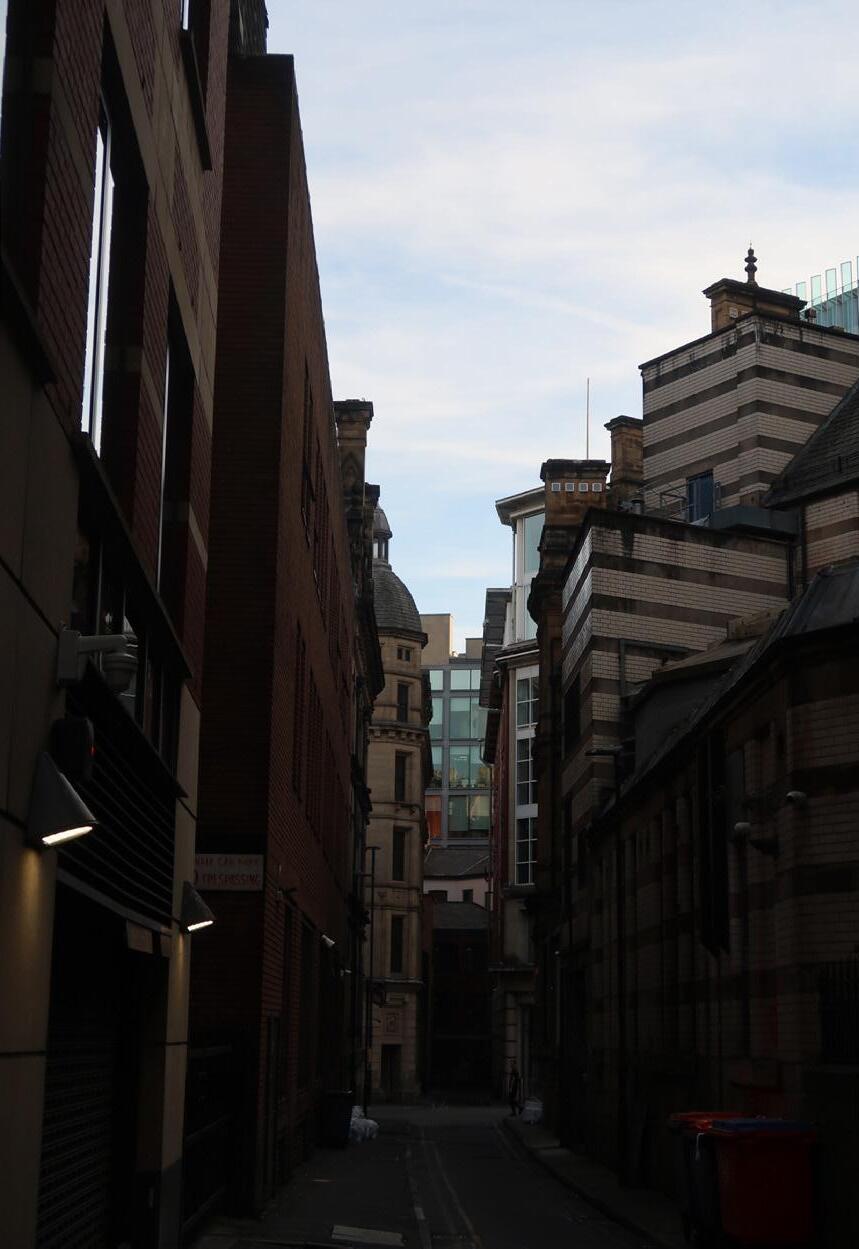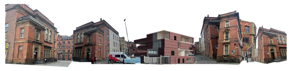 The building is critical, particularly in this aspect, as it is situated in the heart of Manchester. It is built on a Triangular Island site, with three main ranges within a triangular courtyard filled mainly by a rectangular Great Hall.