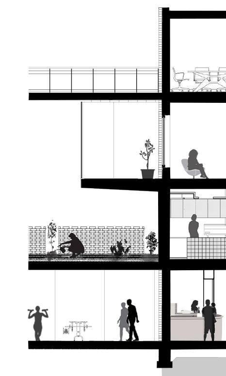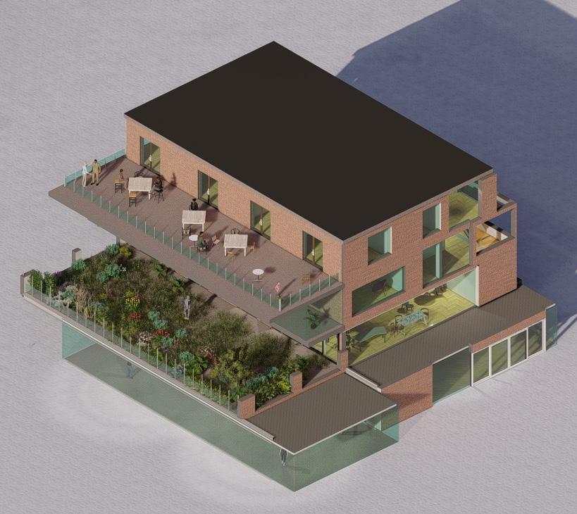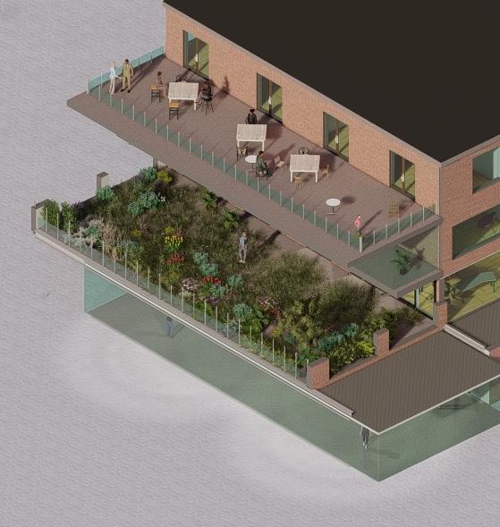 However as to accommodate more space to provide a larger learning creative space whti room for a cafeteria, a second level can be integrated to the fire station.