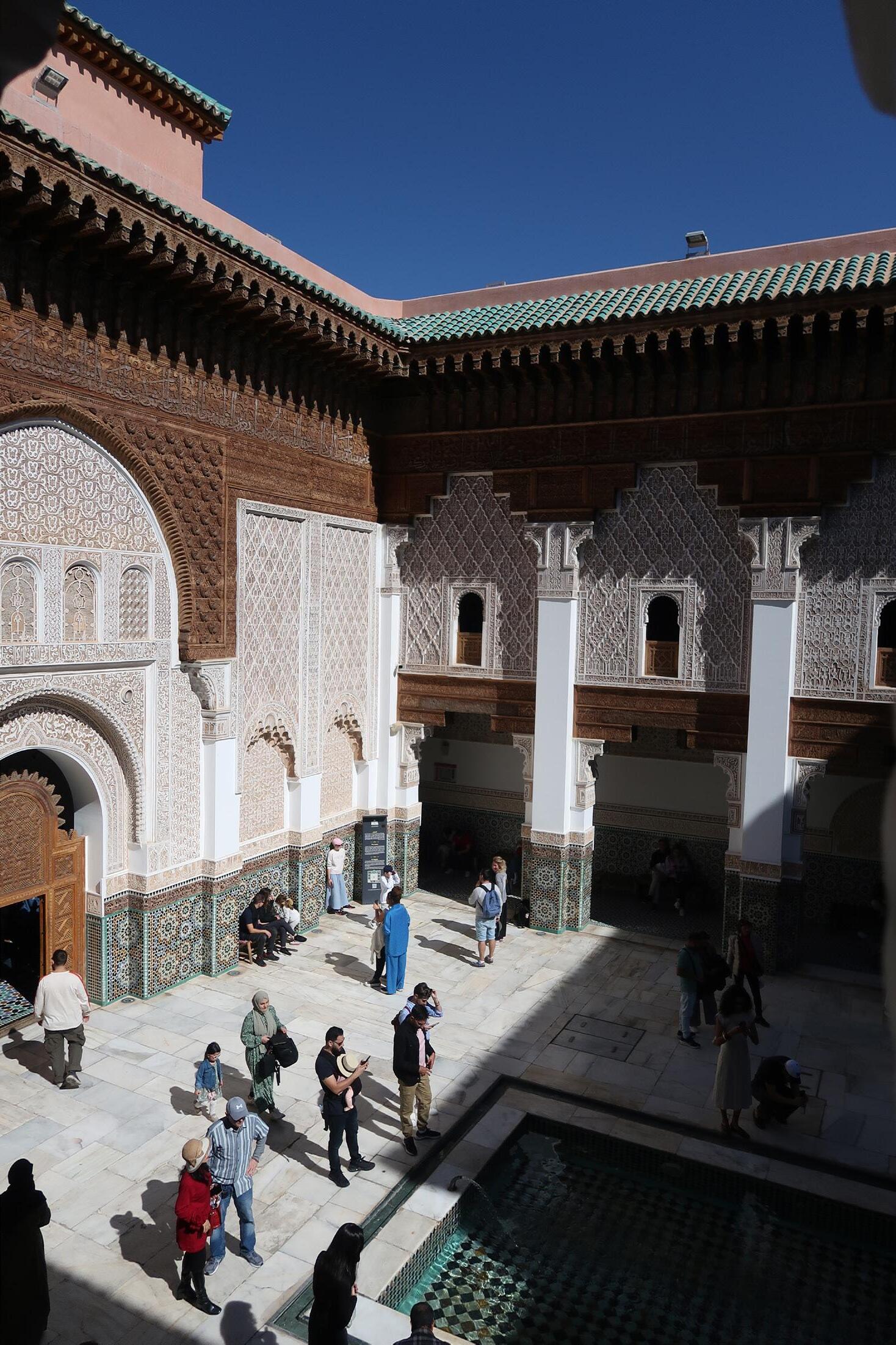 The placement of the music section makes the musical elements not dominate and disrupt human traffic in the middle, forming an intimate space and not interfering with the people using the space, as it would be intrusive if it were placed in the middle.