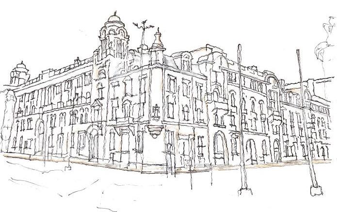 The building is built on a triangular space, with three storeys and attic rooms. The front elevation is on Albert Square, while the two side elevations stretch along Princess Street on the left and Lloyd Street. The primary investigation is understganding the building... the heirtage of the detailings there are two main entrences on these streets