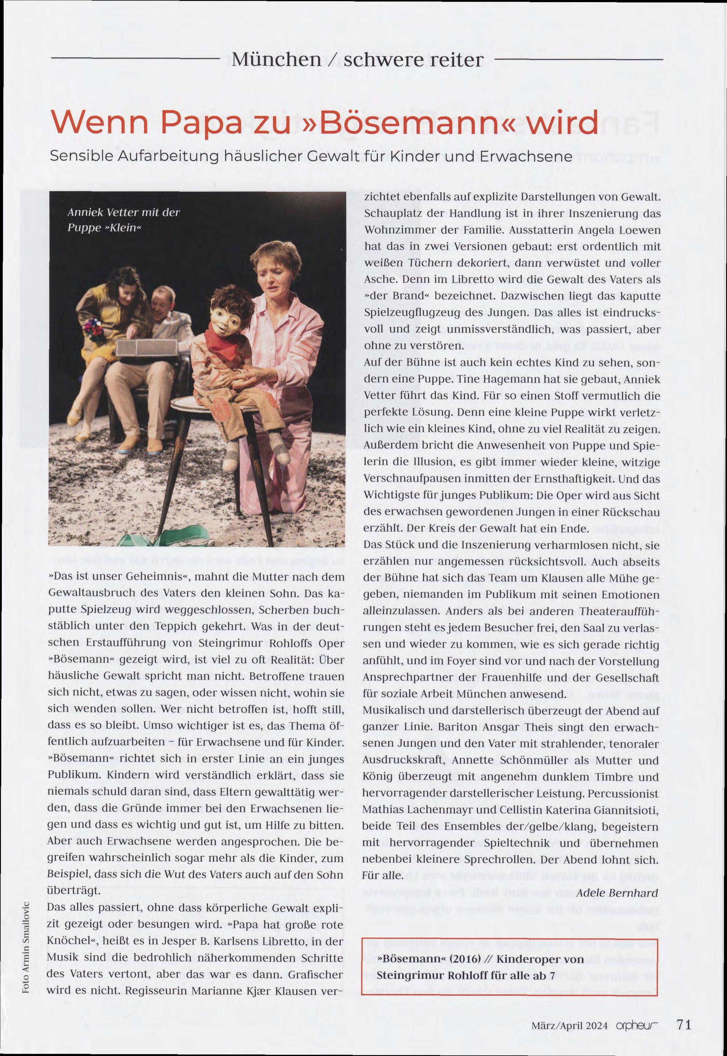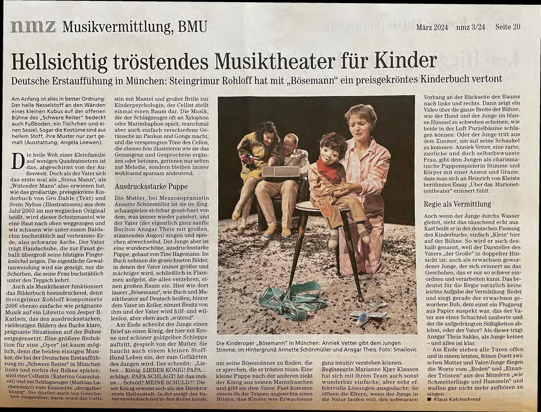 - „BÖSEMANN“ Kinderoper von S. Rohloff, Libretto J. B. Karlsen schwere reiter München, Produktion und Regie
