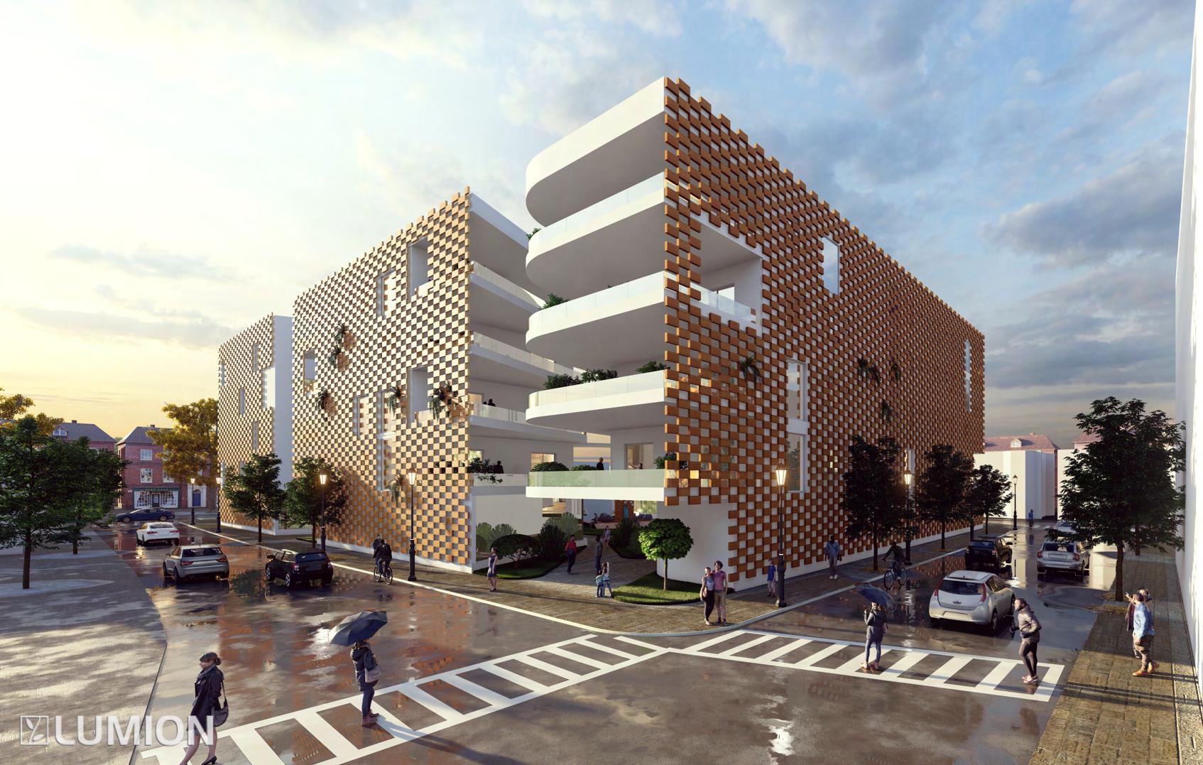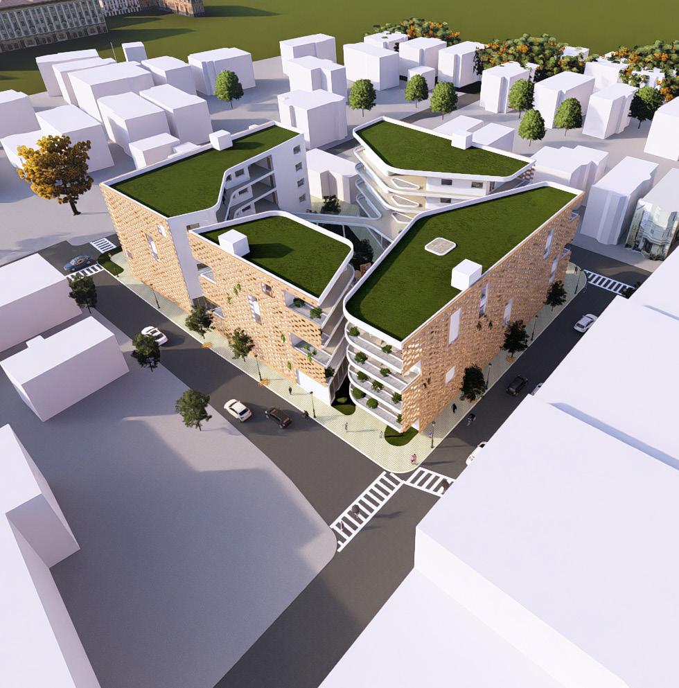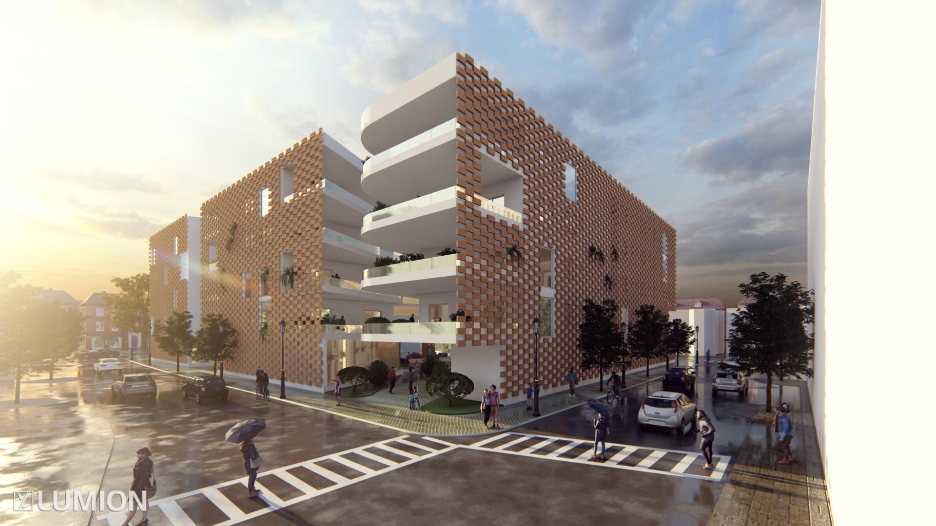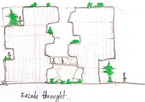 Softening of the edge is a distinctive housing concept that embraces a warm and inviting ambiance within its interior courtyard, fostering a pervasive sense of excitement for its residents. The seamless integration of lush green spaces, both horizontally and vertically, enhances the overall well-being of the community.