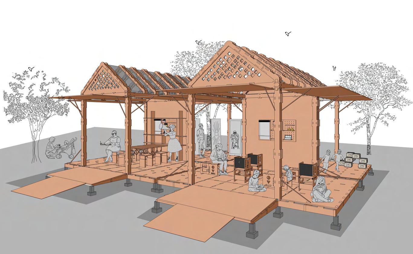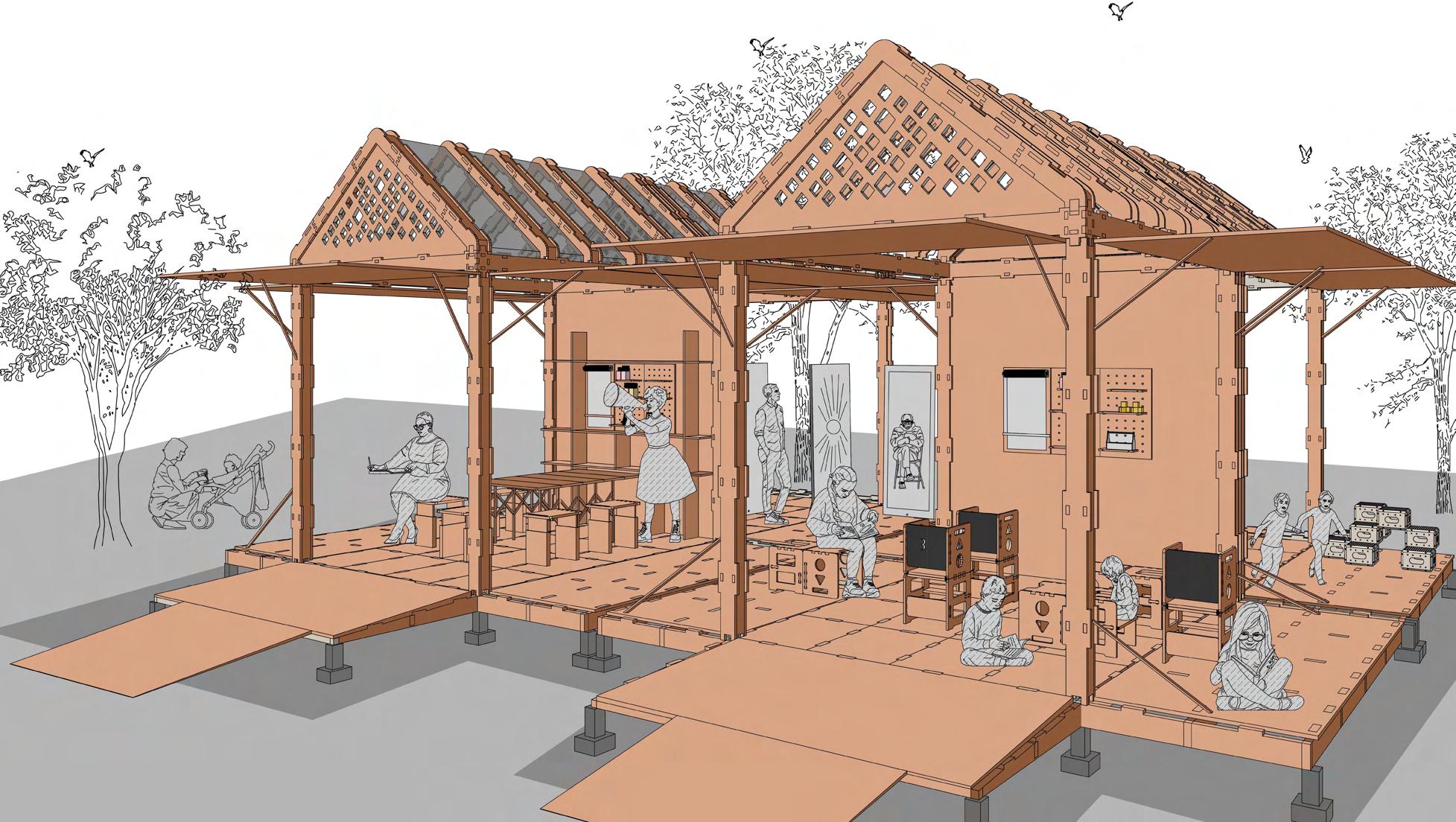 The Puzzle House is more than just a structure—it’s a symbol of connection and collaboration. Inspired by the way puzzle pieces fit together, this modular pod is designed to bring people closer, fostering interaction and a sense of community. Just as assembling a puzzle requires effort and careful matching, the Puzzle House serves as a gathering space where residents can come together, exchange ideas, and find solutions to shared challenges. Built entirely from wood, the Puzzle House consists of modular pieces that can be easily assembled by anyone with a basic understanding of how puzzles work. Its flexible design allows for reconfiguration into various layouts, adapting to different needs. The space functions as a community meeting hub, exhibition Centre, learning and play area for children, and dynamic environment where furniture pieces shift to accommodate different activities. At its core, the Puzzle House is about building—not just a structure, but a stronger, more connected community.