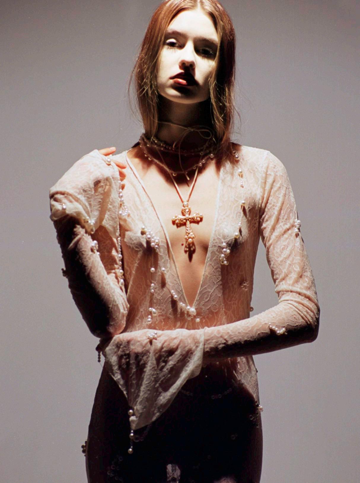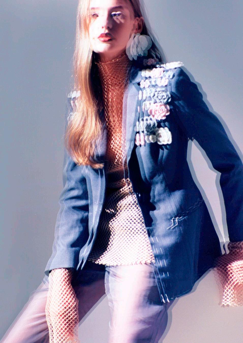 Ricordo un vecchio numero di The Face con Kate Moss in copertina fotografata da Corinne Day (per la quale io impazzisco letteralmente). Mi capitò tra le mani che ero solo un ragazzino e da lì ho sviluppato un’ossessione per Kate e per ‘90s. Sono attratto dalle dissonanze, la perfezione mi annoia, stona, non mi interessa, e in quella fotografia c’era un ché di sbagliato, a cominciare dalla modella, che mi folgorò. Kate Moss era una bellezza totalmente fuori dai canoni dell’epoca, le modelle allora erano Linda Evangelista, Naomi, Claudia Schiffer, donne molto belle, giunoniche, altissime. Invece lei era acerba, con una faccia un po’ da alieno, zero sexy o comunque sensuale in modo diverso. Ancora oggi, quando rivedo quell’immagine un po’ aspra, così reale, con quella malinconia di fondo, trovo incarni un approccio alla moda super elegante, super chic. Degli anni Novanta in Des_Phemmes si ritrovano principalmente le forme: lavoro sempre su silhouette molto pulite, guardo al vecchio Helmut Lang, a Donna Karan, al Calvin Klein d’annata.