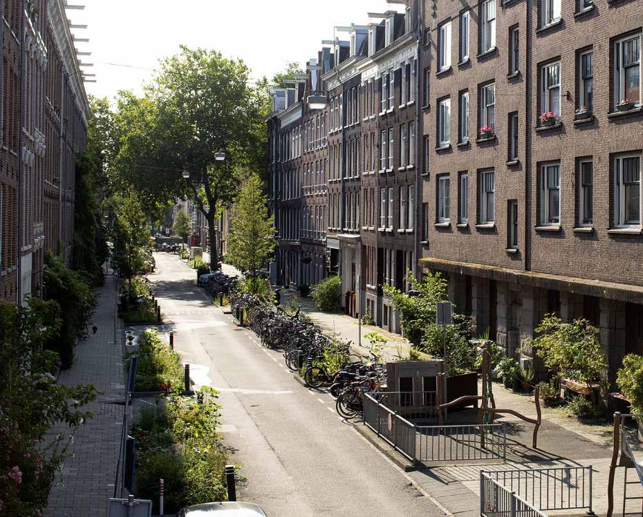 • Since the 1980s, the space for cars has gradually been reallocated to pedestrians, cyclists and the tram. In 2015 cars were banned completely from the first part of Plantage Middenlaan at Wertheimpark. This is a result of the yearlong policy of reducing car traffic in the city.