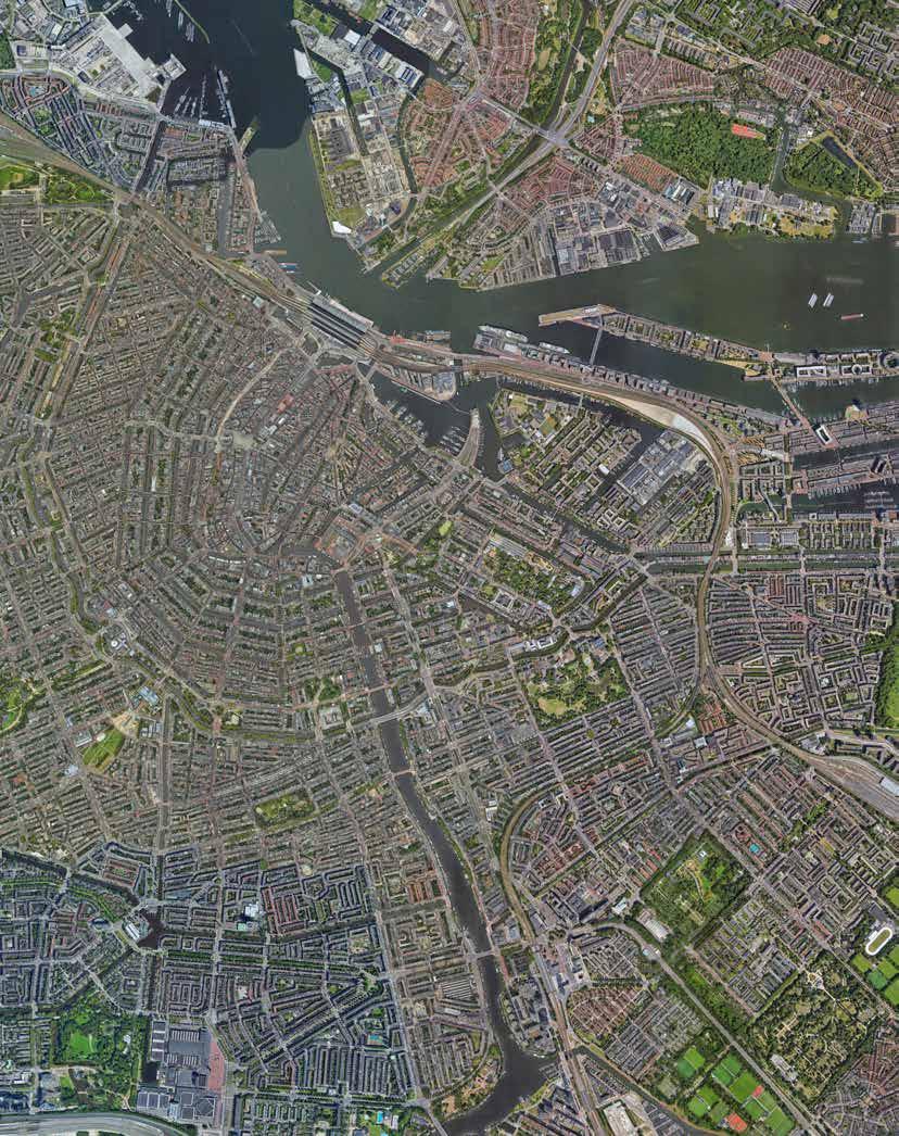 Surface parking lots do exist in Amsterdam! Roundabouts rule! You can see the inspiration modernist planners felt at the time to build cities that were less focused on small scale beauty and more impressive from a wide-lense vantage point.