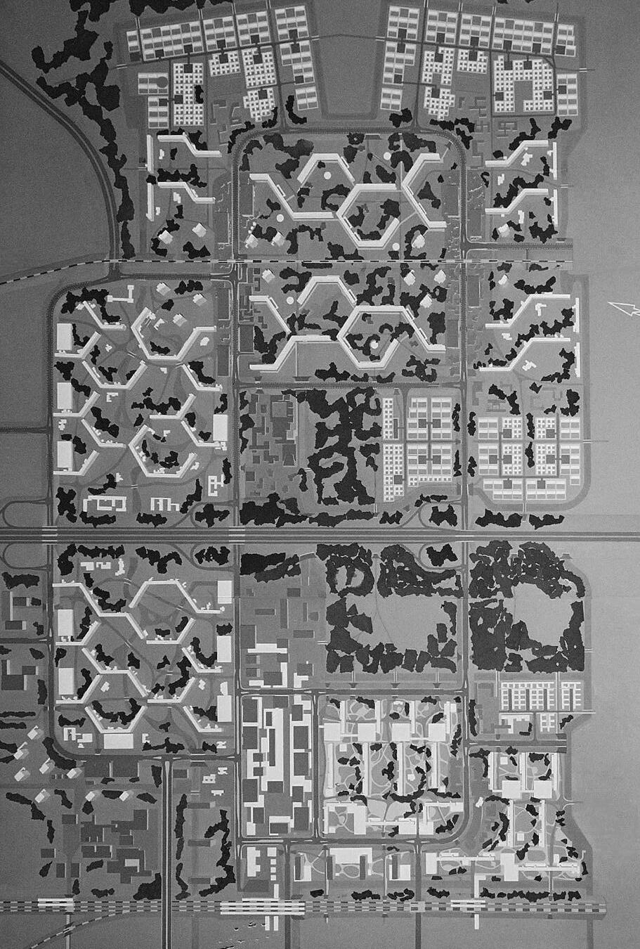 The original design of the Bijlmer was characterized by large high-rise housing blocks with spacious, bright apartments. Motorised traffic was elevated above the living area, parking space was minimised by multi-story garages, and there were different roads for bikes and pedestrians.