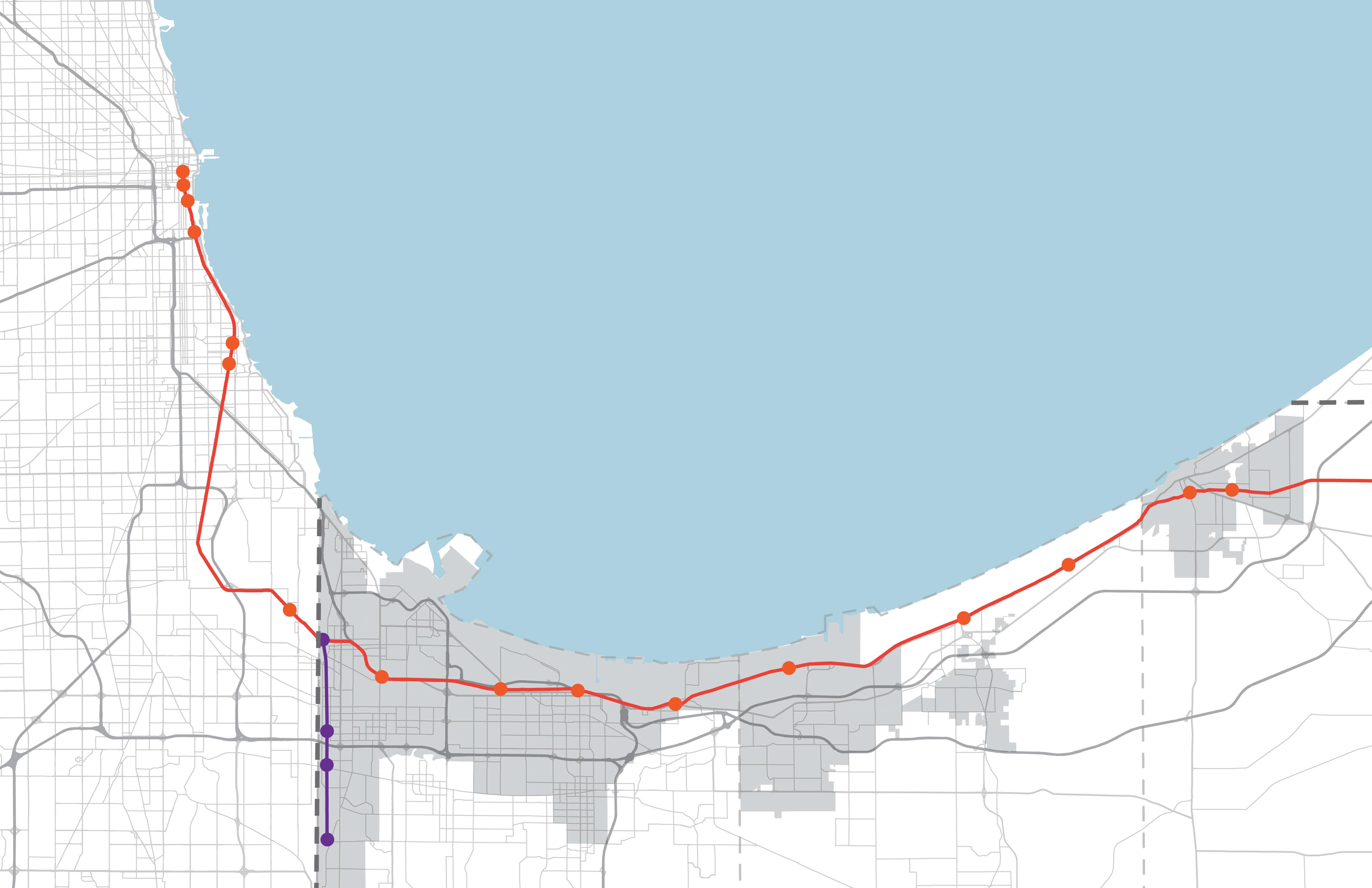 • 9-Mile extension of existing SSL service between Dyer and Hammond, includes four new stations, a maintenance and storage facility, refurbishment of 32 rail cars, and construction of 2,322 parking spaces.
