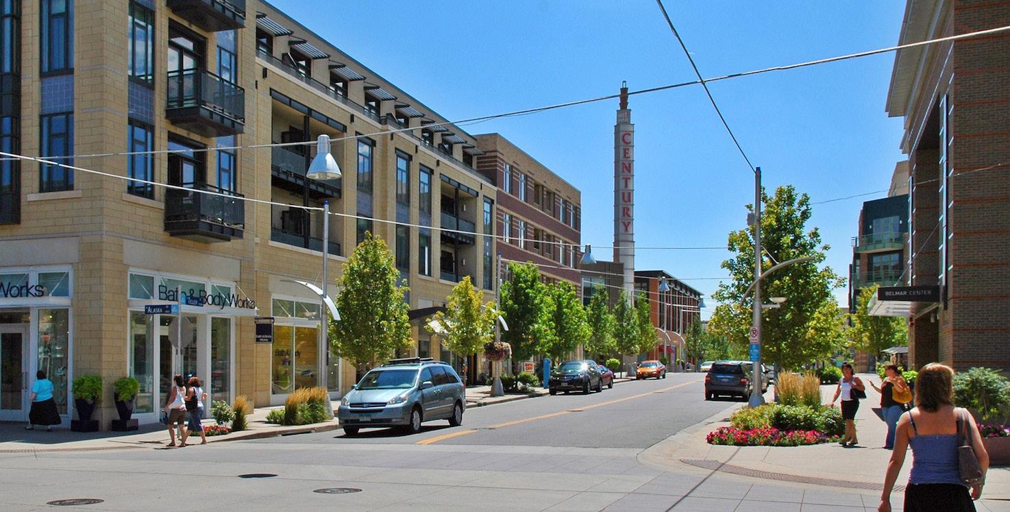 Higher density mixed use areas; has a tight network of thoroughfares with side sidewalks, street lights and regular tree spacing, defining medium-sized blocks; buildings are set close to the sidewalks