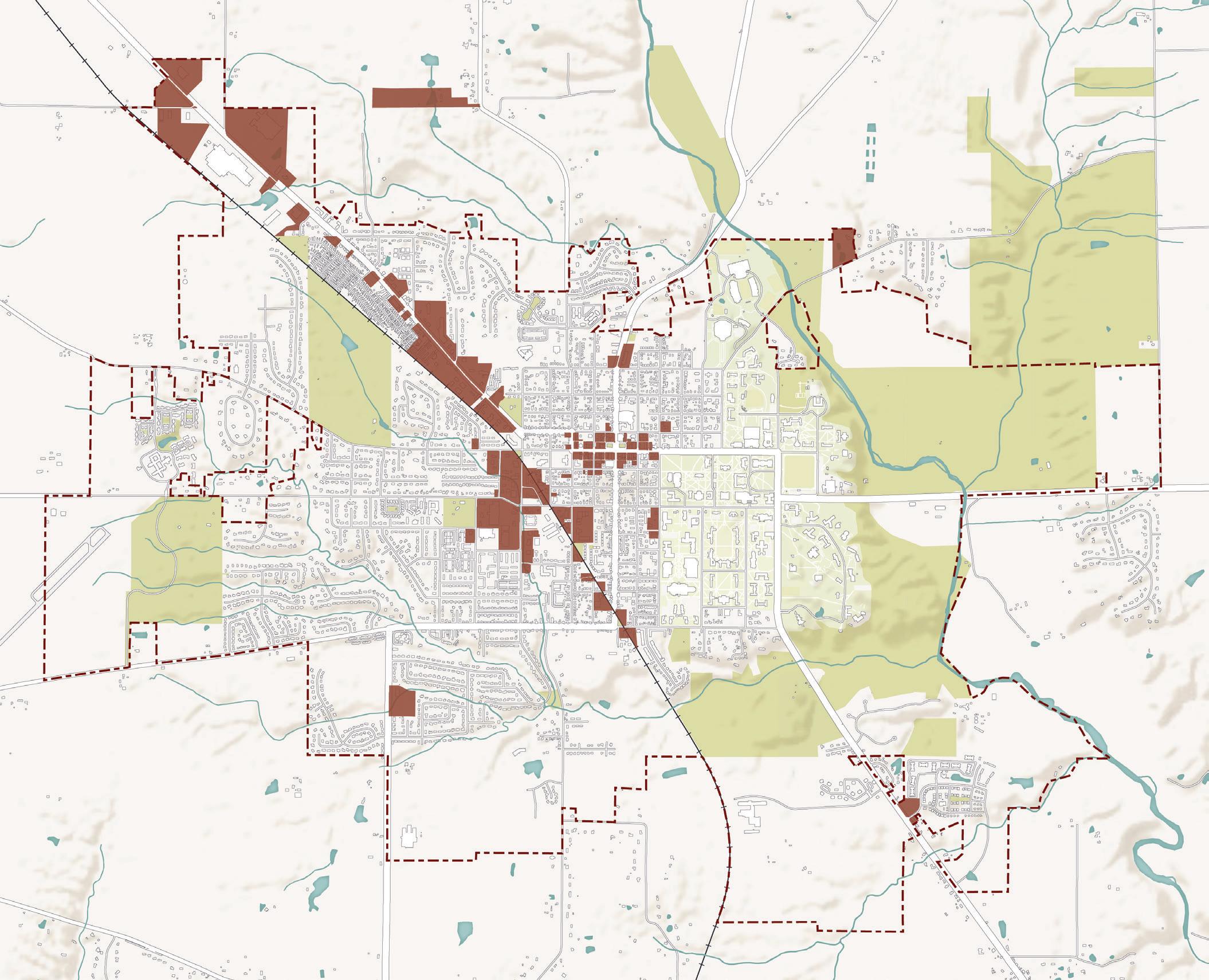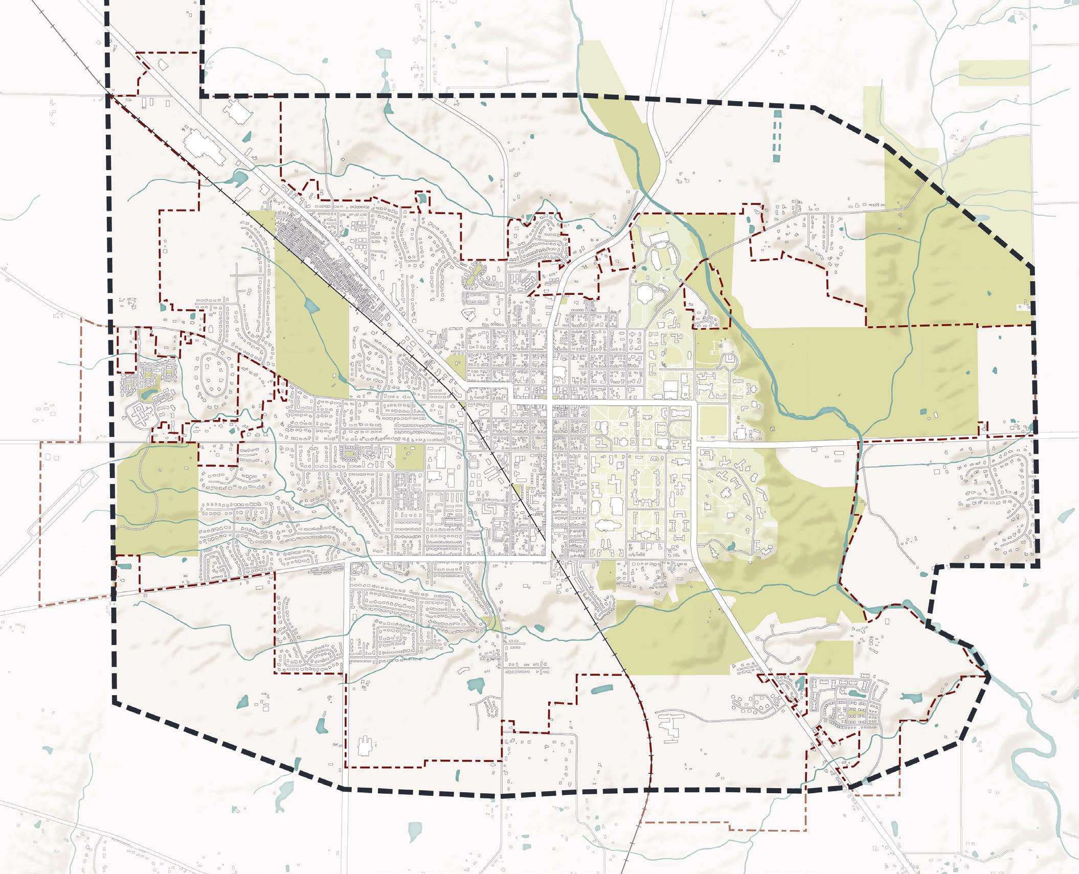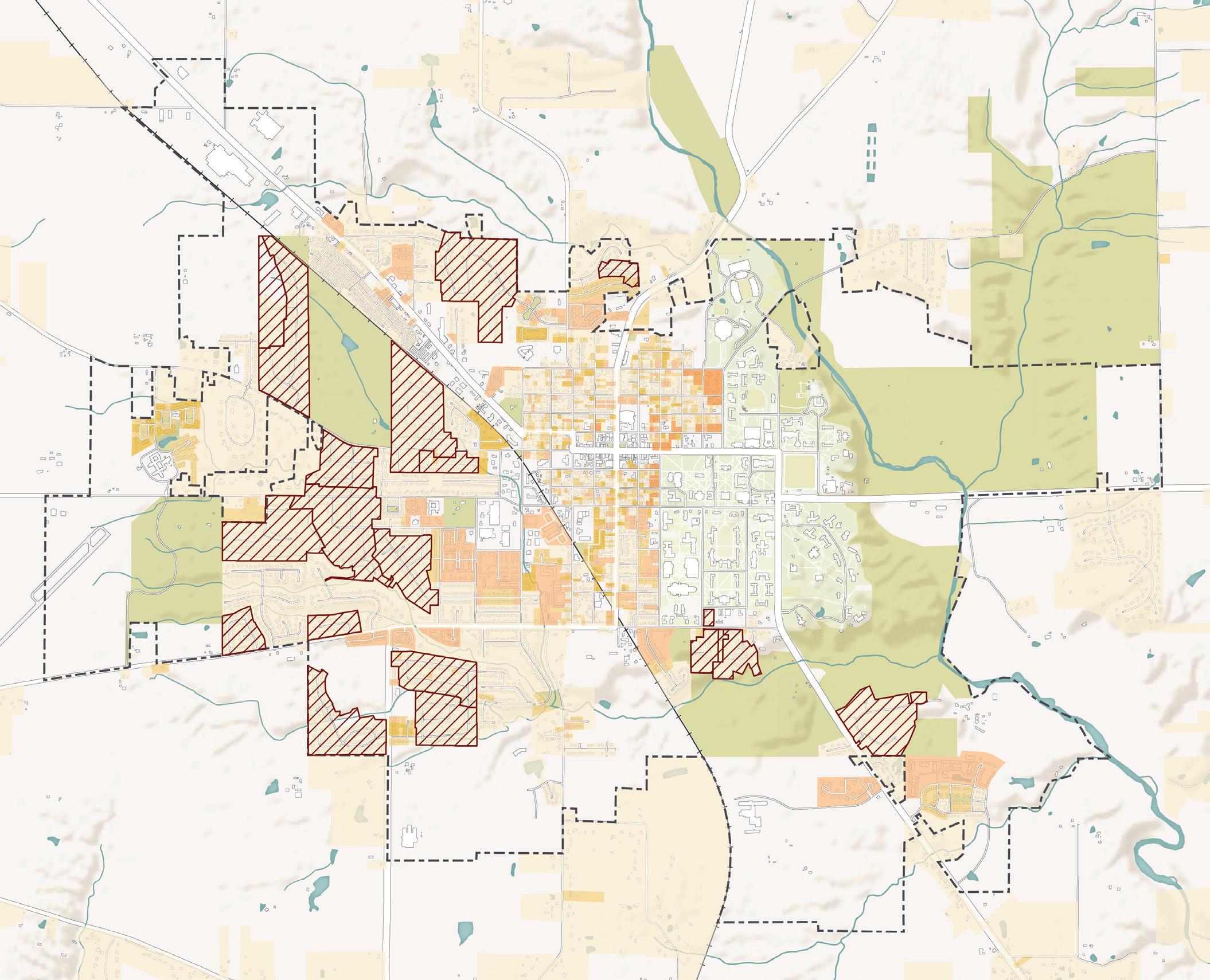 This comprehensive plan evaluates Oxford as it exists today within the current city limits, while also considering the potential for physical expansion of the city in the future. On the map above, the red dashed line represents the current city boundary. The city currently spans 7.78 square miles. Everything beyond the boundary is within Oxford Township or Milford Township. Typically, in Ohio, annexation of property from an unincorporated area of a township into a neighboring city happens at the request of the property owner. Most often, property owners request annexation to receive certain public utilities, like water and sewer service. The urban service boundary depicted on the map above, which was defined during the previous comprehensive plan effort, represents territory where the City could have potentially expanded its utility service systems since 2008. The question of where and how the City should direct its services–and consequently, growth and development–is revisited by this new plan.