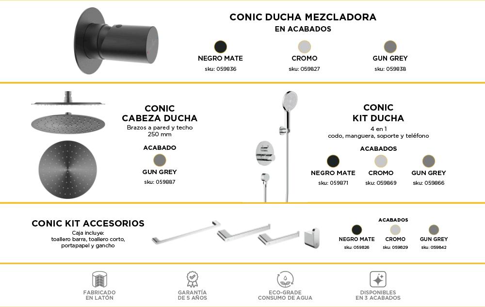 Diseño minimalista y moderno, con líneas estilizadas, que ofrece una gama de acabados especiales para darle vida a tus ambientes de baño