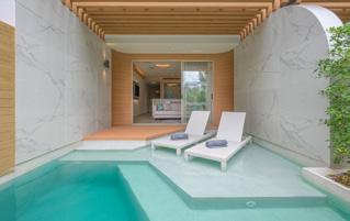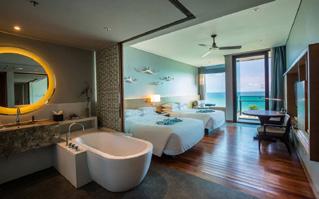 ン・スイートでは、自然の景色、 香り、音に包まれ、リラックスできます。部屋にはキングサイズのベッド、エアコン、屋内と屋外のシャワーが備わっています。ビーチフロントスイートは3つのチー