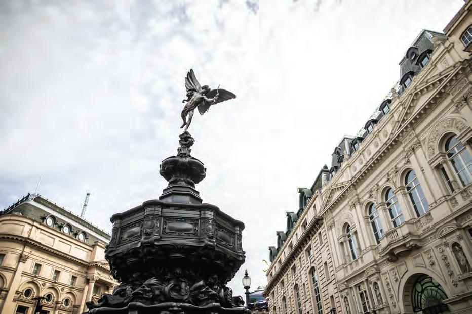 With nods to the Shaftesbury Memorial Fountain, this design integrates smooth, circular patterns that evoke the iconic Eros