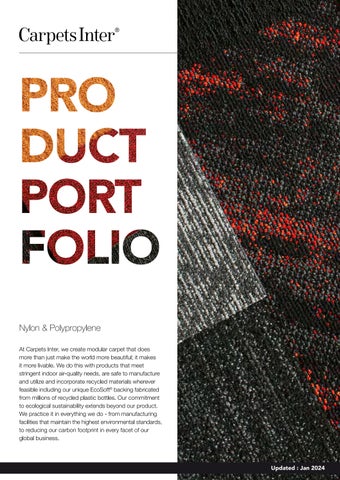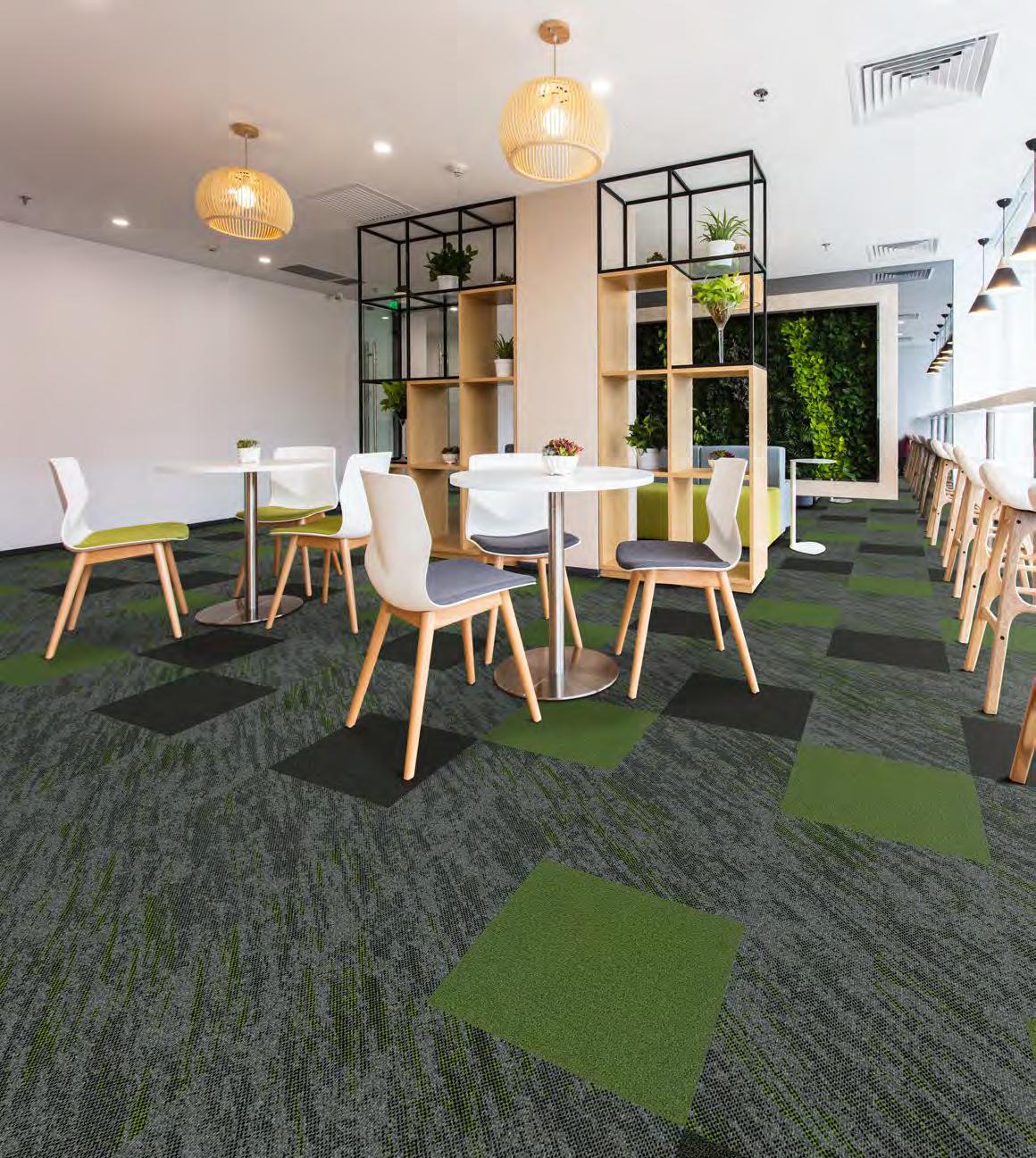 Carpets Inter providetwounique modularcarpet backingoptions in EcoSoft(felt back)and EcoSquare(resilient back).Unlessstated all stock keepingunit() isavailable in EcoSquare back. Foralternative backingchoice, pleaseconsult your local Carpet International distributor orCI sales representative.