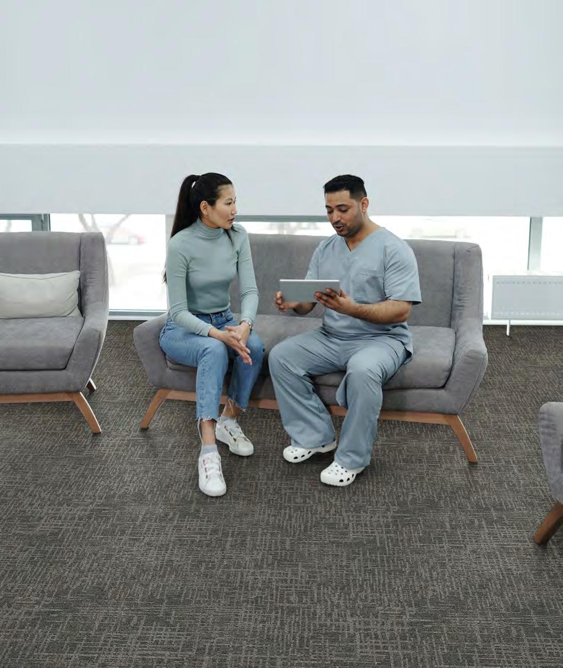Accidental spillage onto ØFlowSoft® remains on the carpet surface, where they can be readily spot cleaned and treated. Carpet seams are sealed during installation with an anti-microbial seam-weld to prevent moisture penetration.