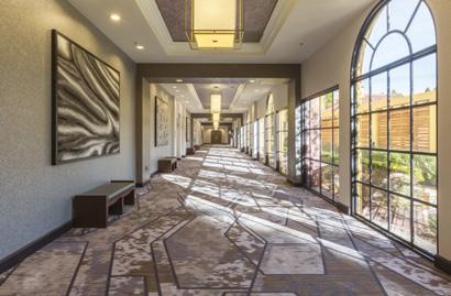 Framed by neutral stone and glass finishes, the Lobby Lounge carpet acts as a visual and sensory