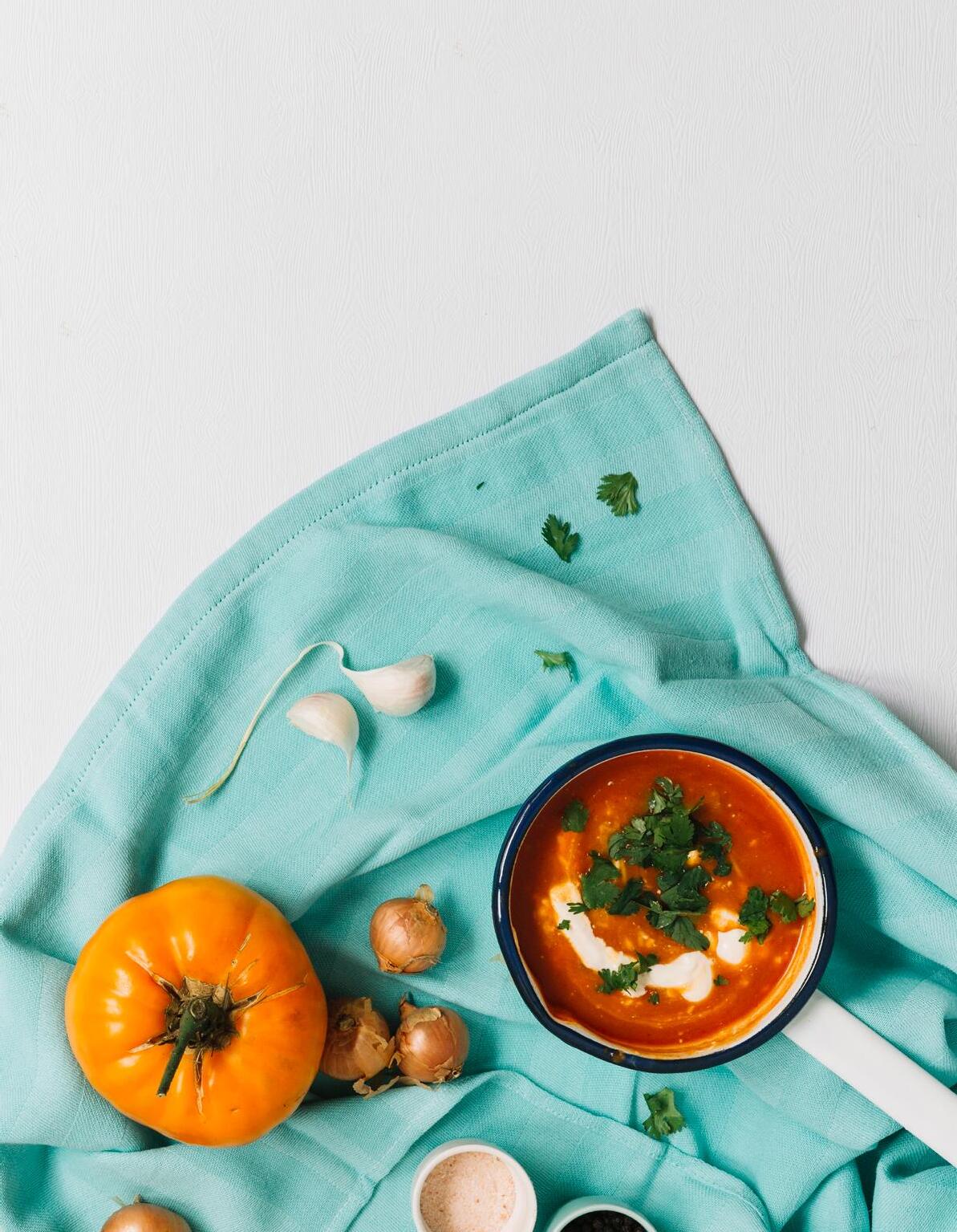 Crema de calabaza con dados salteados de tofu ahumado