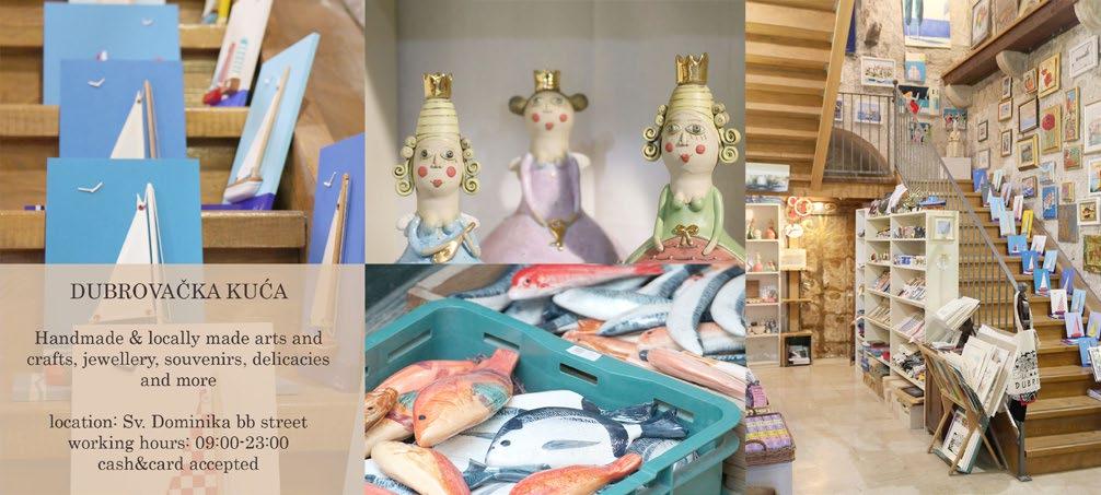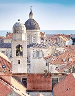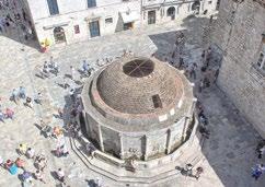 —the Placa or Stradun Locals and tourists alike love this bustling 300-meter limestonepaved promenade! Overflowing with history and culture, every step echoes the marvelous marriage between contemporary restorations that celebrate ancient traditions, framed by steep warren-like staircases that lead to museums, private residences, shops and more —enjoy a gelato, an espresso, a splash of cool water from the city’s many fountains, like waterspouts feeding Onofrio Fountain that brought fresh water in 15th century, from a spring 12 km away.