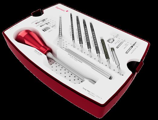 Osteótomos específicos para implantes Epikut S PTG no mesmo kit.