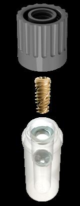 Sistema de implante que oferece o tapa implante na mesma embalagem. Para capturá-lo, remova a tampa superior do tubete e encaixe na chave digital hexagonal 1.2mm.