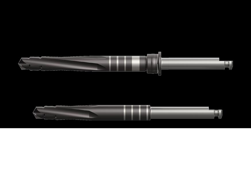 Indicados para pacientes com pouca abertura de boca/ regiões posteriores; Possibilita a instalação de implantes de 7mm/8.5mm/ 10.0mm/ 11.5mm**; Não apresenta encaixe para limitador do Safe Drill.