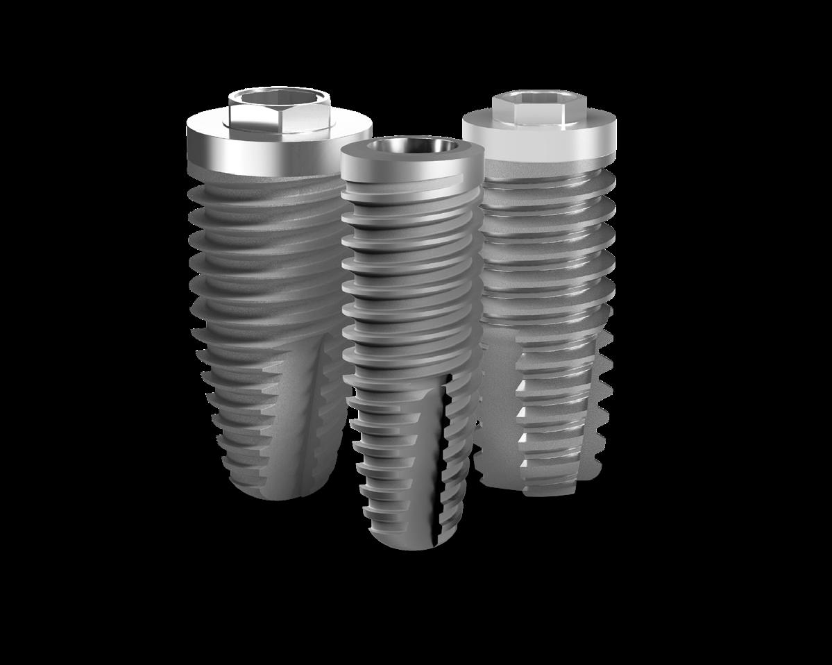 Possui rosca externa com diâmetro de corpo variado e plataforma com diâmetros de 3,5; 3,75; 4,0; 4,1 e 5,0 mm: proporcionando rápida inserção e menor trauma.