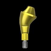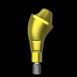 O Mini Abutment com angulações de 17, 30, 45, 52 e 60 graus e alturas de 2,0 mm a 4,0 mm feito de liga de titânio e cor dourada anodizada. Seu torque de instalação é de 20Ncm.