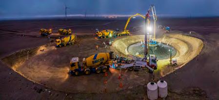 En esta nueva edición presentamos dos obras que contribuyen al desarrollo y sostenibilidad de nuestro país. Por un lado, la ampliación del Parque Eólico Wayra II, donde suministramos el concreto para la habilitación de 30 torres eólicas adicionales. Esta obra representó grandes retos, considerando la frecuencia y el volumen de sus vaciados masivos en una zona desértica de Nazca.